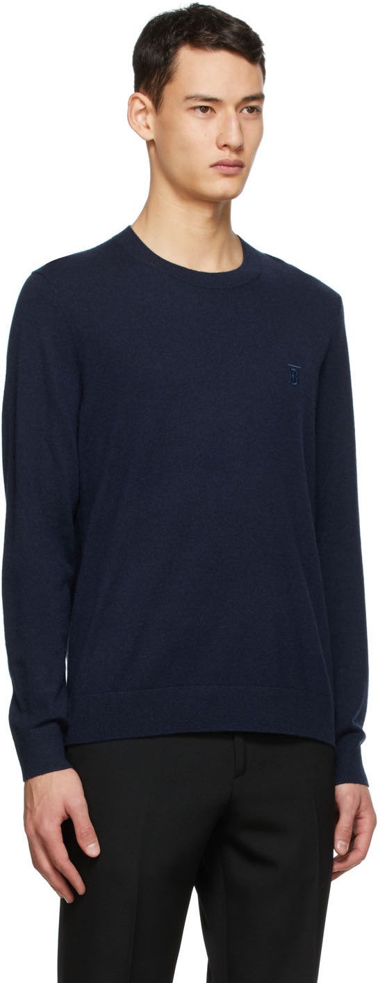 Burberry Navy Cashmere Monogram Motif Sweater