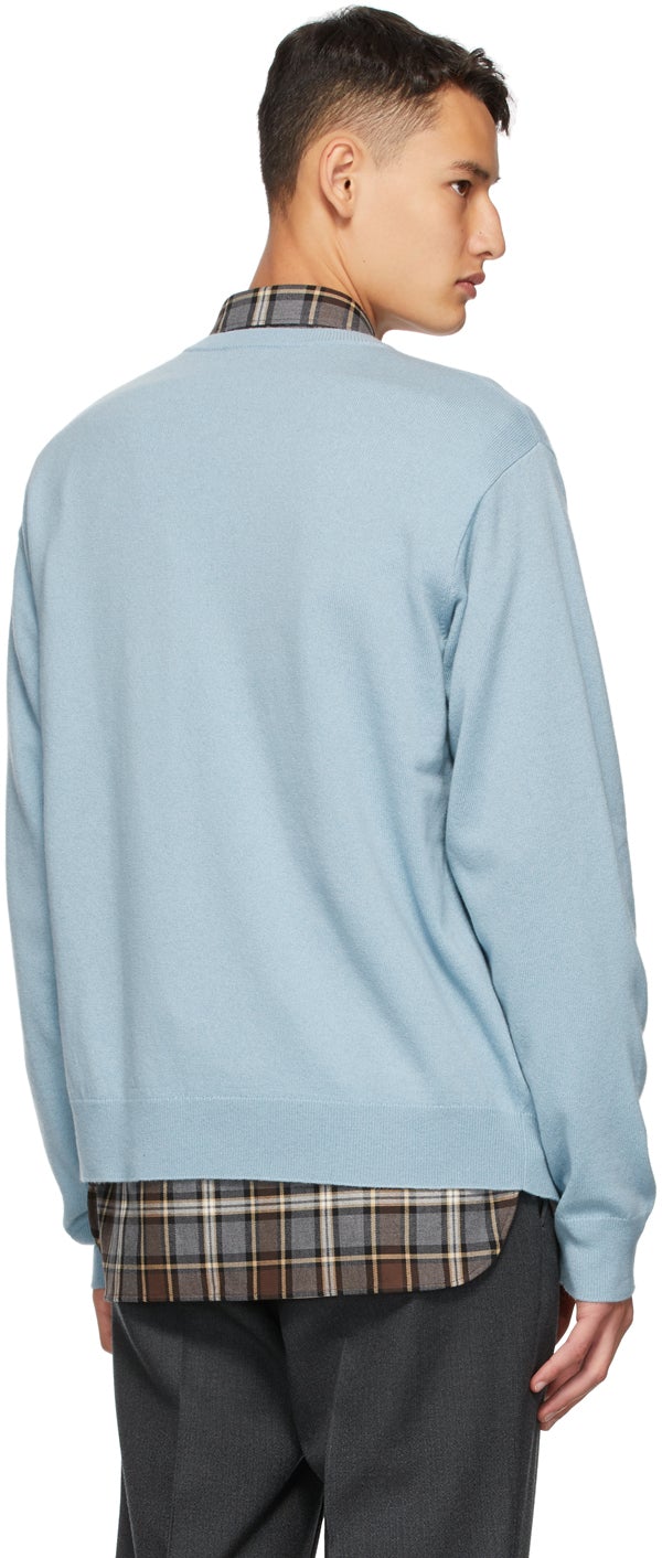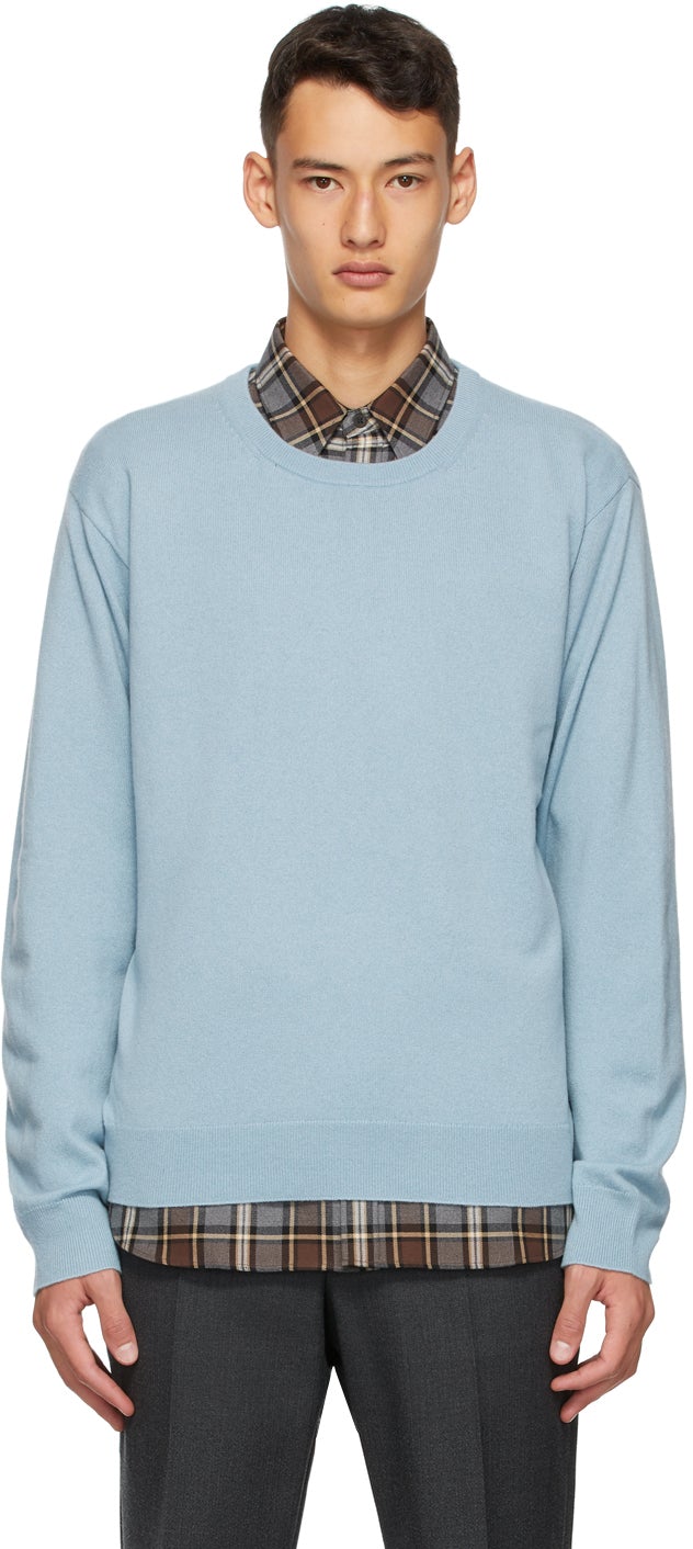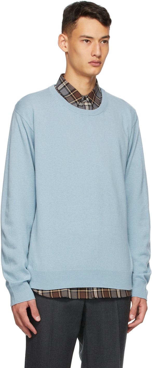 Long sleeve knit cashmere sweater in blue. Rib knit crewneck collar, cuffs, and hem. Supplier color: Light blue 100% cashmere. Brand: Dries Van Noten