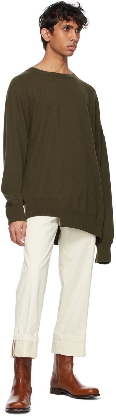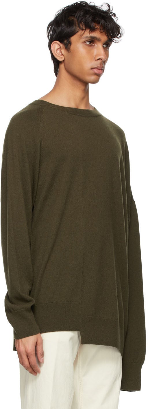 Dries Van Noten Khaki Cashmere Asymmetric Hem Sweater