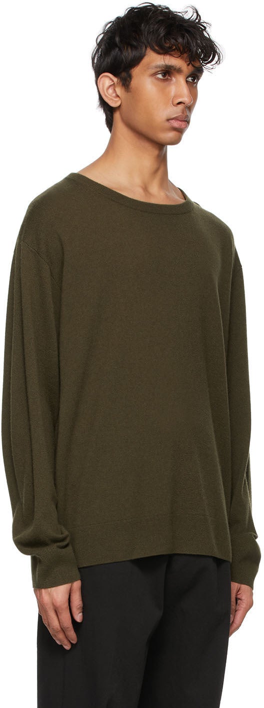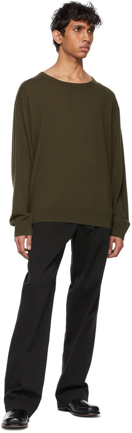 Long sleeve knit cashmere swearer in khaki. Rib knit crewneck collar, cuffs, and hem. Supplier color: Kaki 100% cashmere. Brand: Dries Van Noten