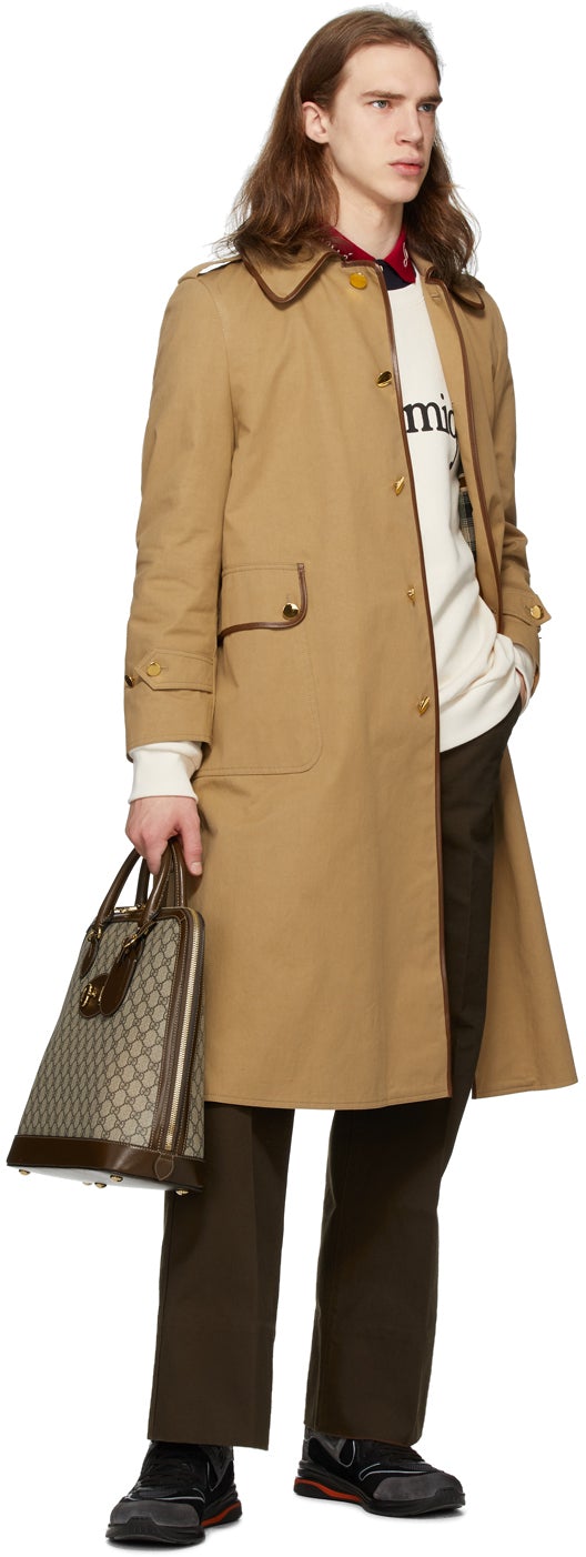 Long sleeve felted cotton sweatshirt in off-white. Crewneck collar. Logo printed at front. Rib knit cuffs and hem. Supplier color: Natural/Black 100% cotton. Brand: Gucci