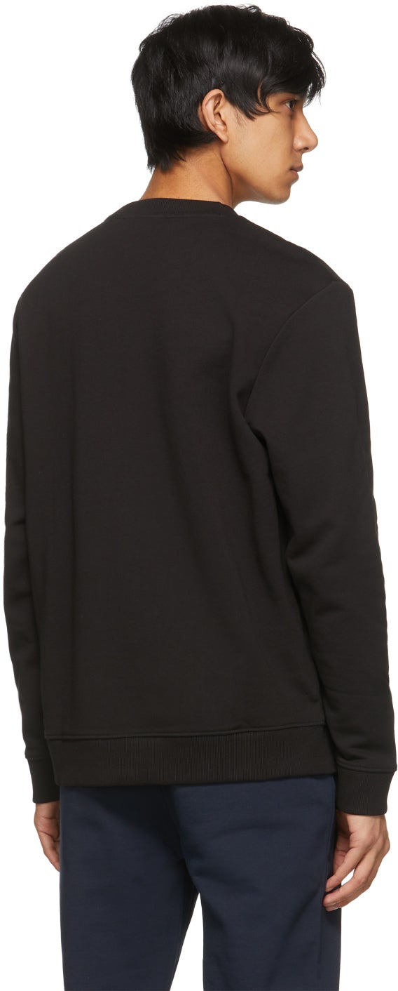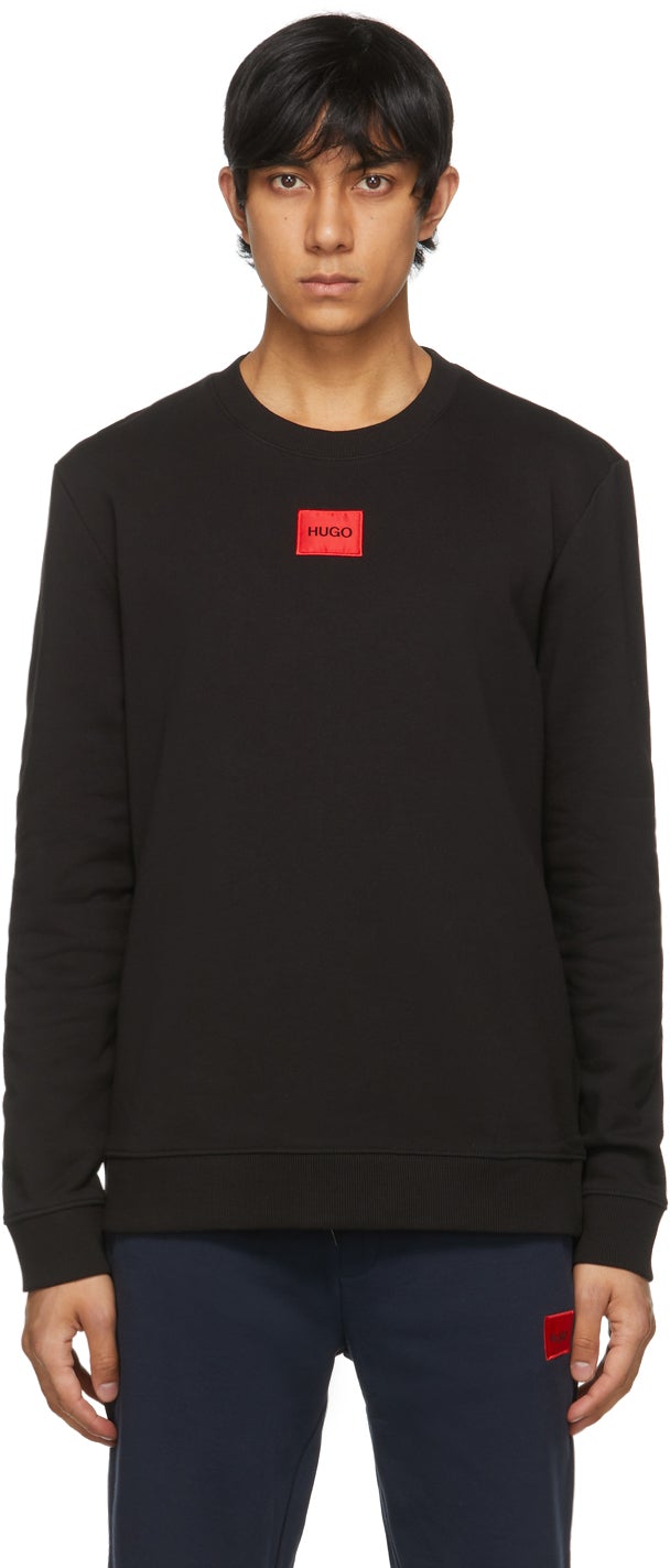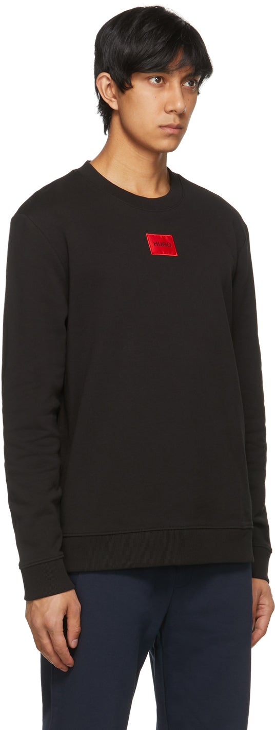 Long sleeve French terry sweatshirt in black. Rib knit crewneck collar, cuffs, and hem. Red embroidered logo patch at chest. Supplier color: Black Body: 100% cotton. Trim: 96% cotton, 4% elastane. Brand: Hugo