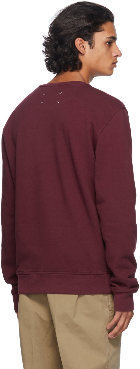 Long sleeve French terry sweatshirt in burgundy. Logo embroidered in black at chest . Rib knit crewneck collar, cuffs and hem. Signature white stitching at back collar. Supplier color: Burgundy Body: 100% cotton. Trim: 94% cotton, 6% elastane. Brand: Maison Margiela