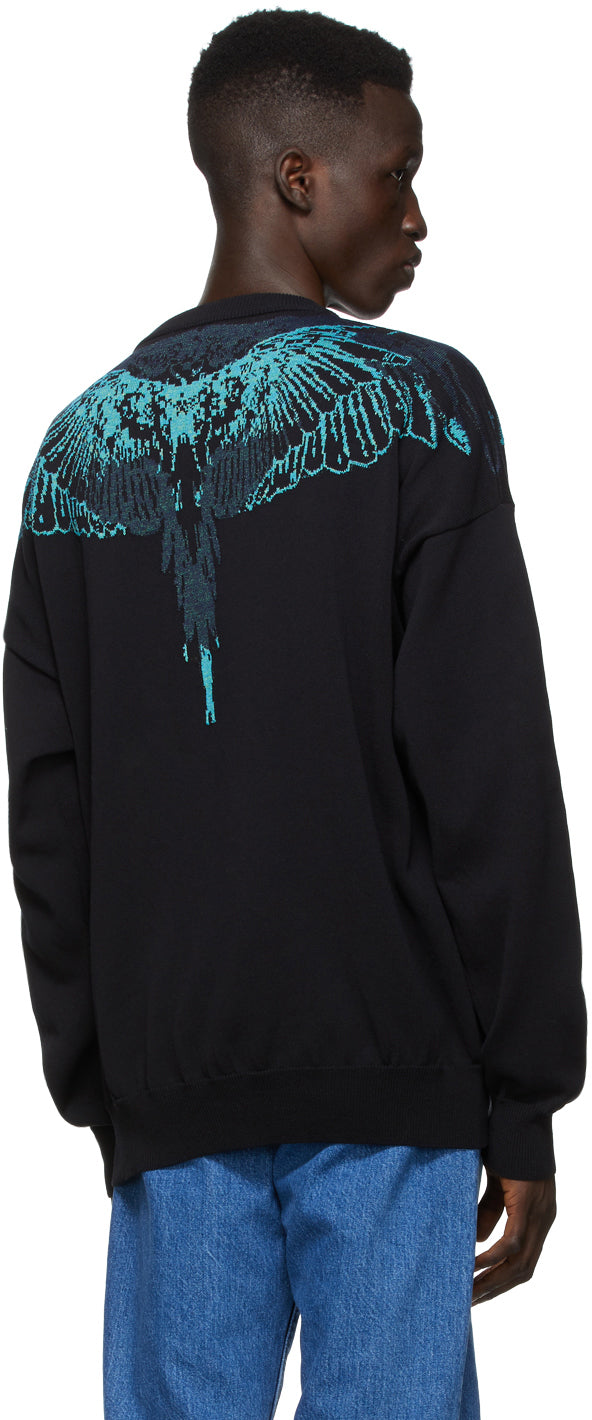 Marcelo Burlon County of Milan Black Jacquard Wings Sweater