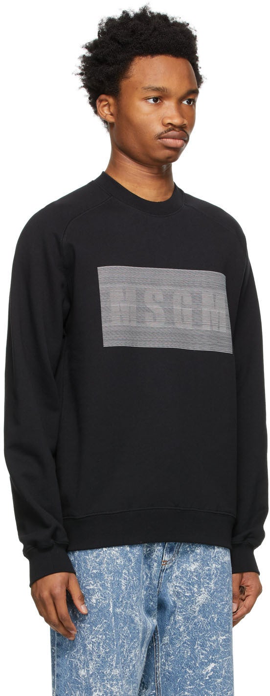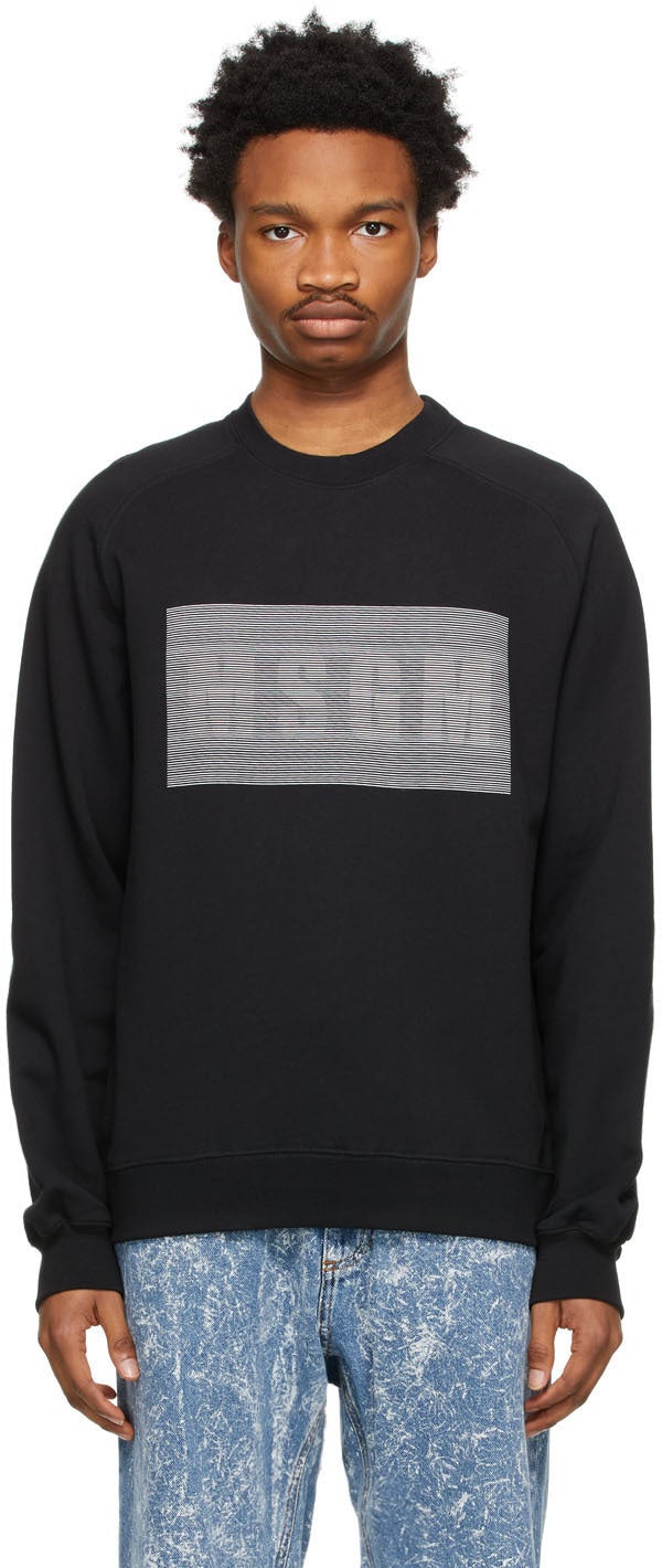 Long sleeve French terry sweatshirt in black. Rib knit crewneck collar, cuffs, and hem. Logo graphic printed in white at front. Raglan sleeves. Supplier color: Black 100% cotton. Brand: MSGM