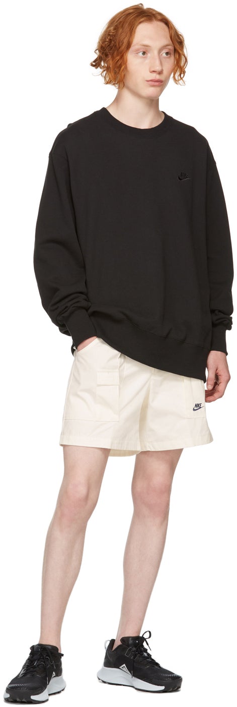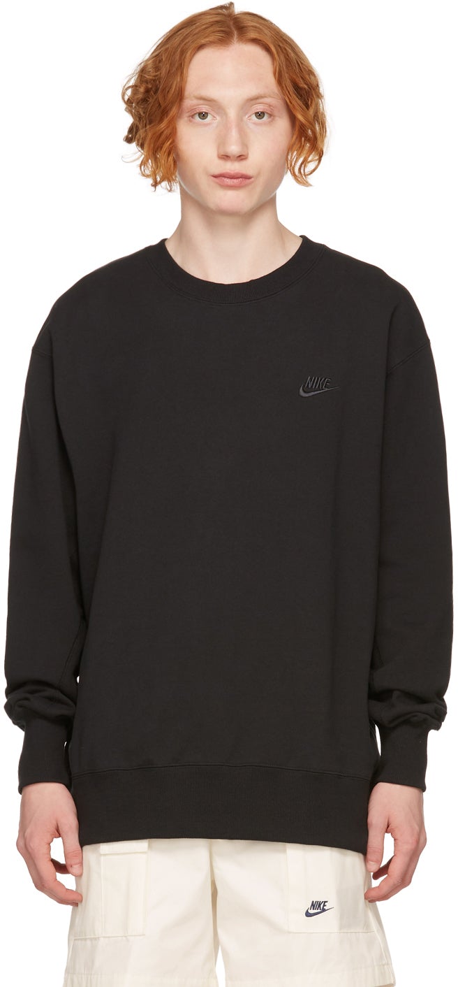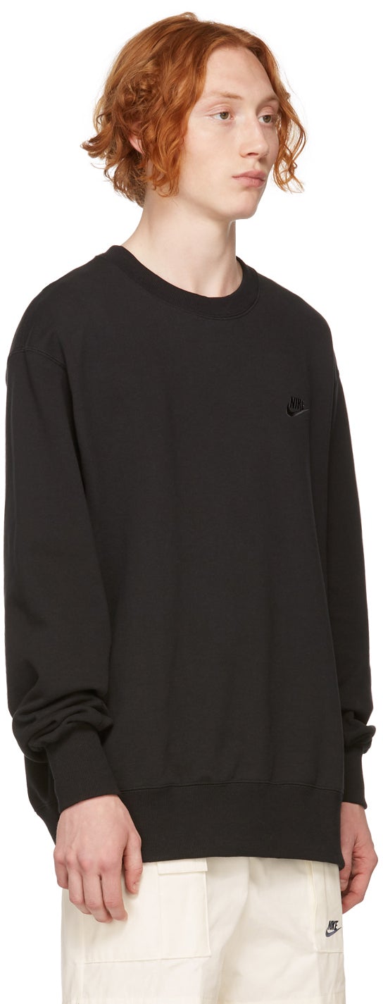Long sleeve French terry sweatshirt in black. Rib knit crewneck collar, cuffs, and hem. Tonal logo embroidered at chest. Supplier color: Black 100% cotton. Brand: Nike