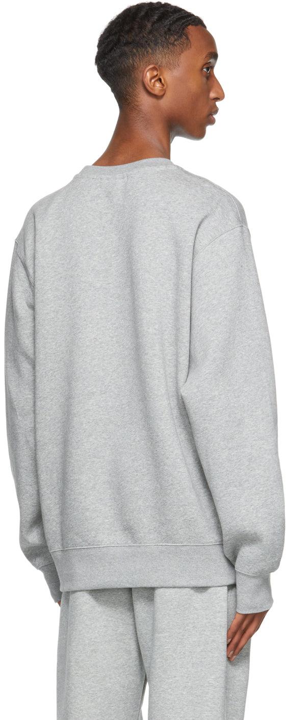 Long sleeve fleece sweatshirt in heather grey. Raised seams throughout. Rib knit crewneck collar, cuffs, and hem. Logo embroidered in white at chest. Supplier color: Dark grey heather/White 80% cotton, 20% polyester. Brand: Nike