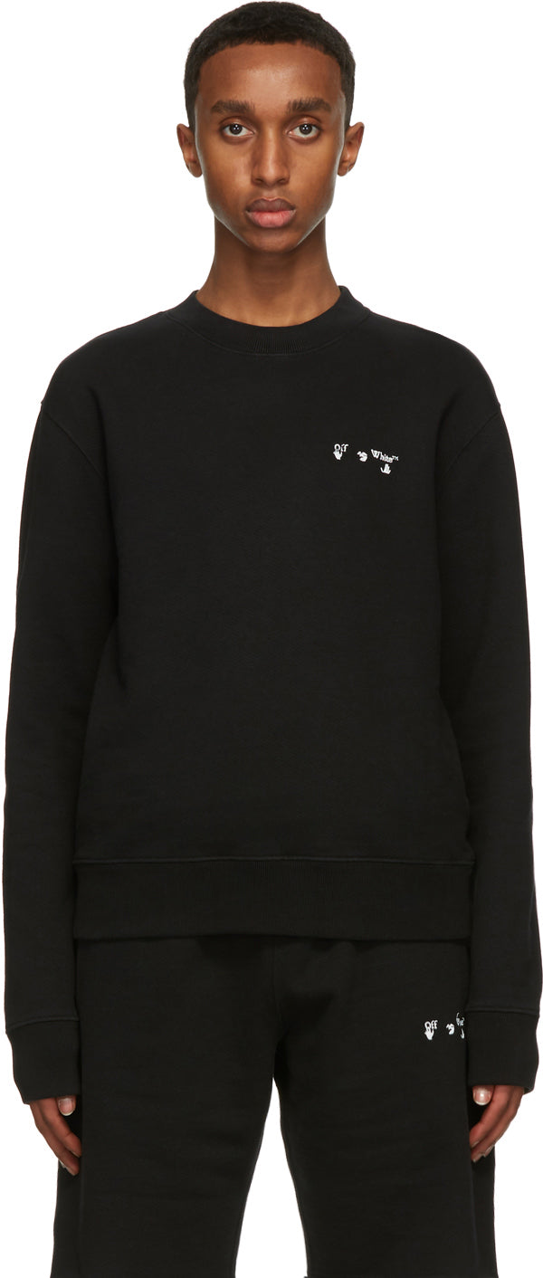 Long sleeve French terry sweatshirt in black. Rib knit crewneck collar, cuffs, and hem. Logo embroidered in white at chest. Supplier color: Black/ White 100% cotton. Brand: Off-White