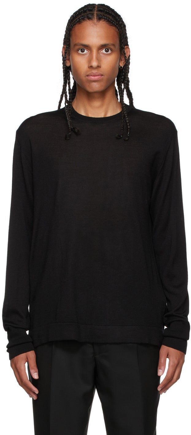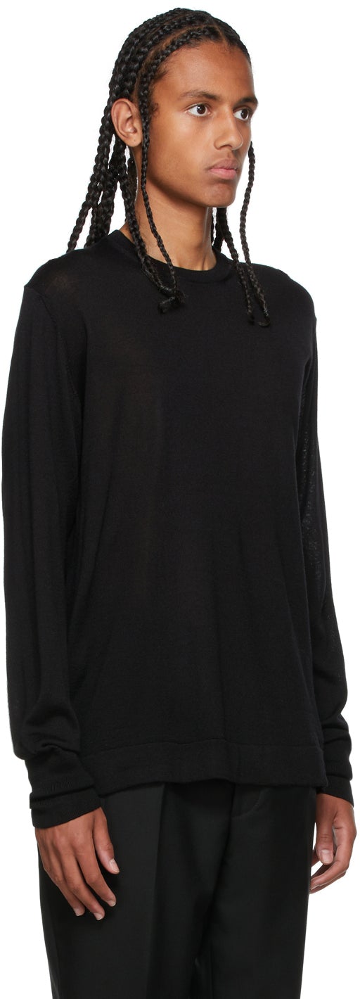 Long sleeve knit wool and silk-blend sweater in black. Rib knit crewneck collar and cuffs. Supplier color: Black 70% wool, 30% silk. Brand: Officine Générale