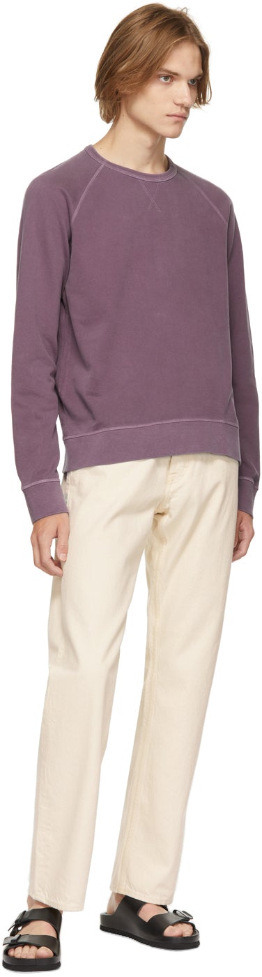 Long sleeve French terry sweatshirt in purple. Rib knit crewneck collar, cuffs, and hem. Raglan sleeves. Supplier color: Plum wine 100% cotton. Brand: Officine Générale
