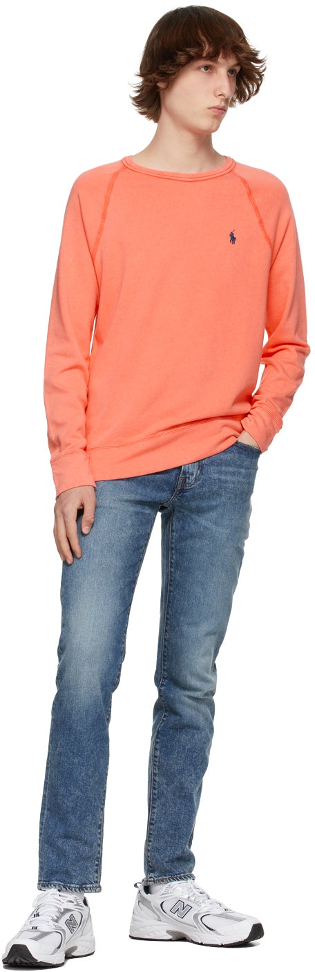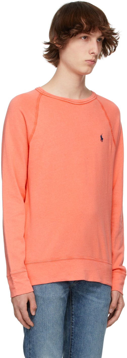 Long sleeve cotton French terry sweatshirt in red. Crewneck collar. Logo embroidered in navy at chest. Raglan sleeves. Supplier color: Racing red 100% cotton. Brand: Polo Ralph Lauren