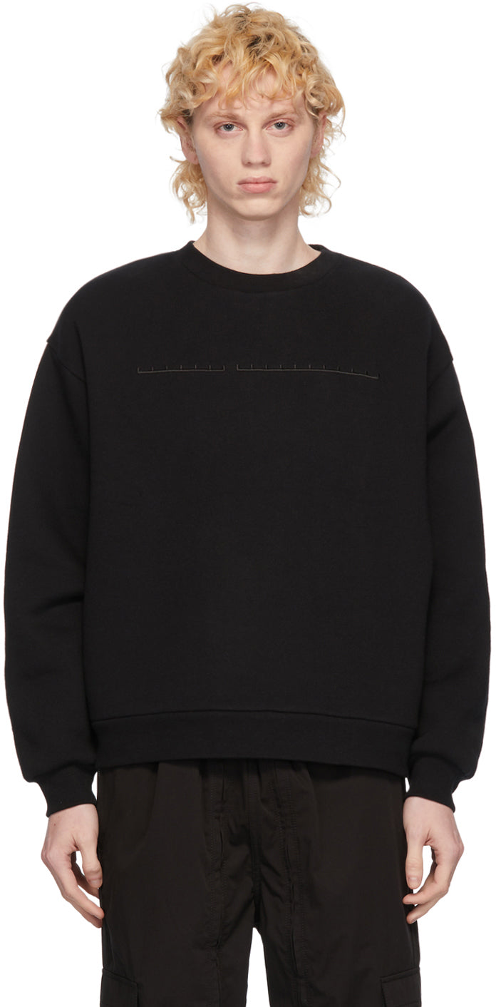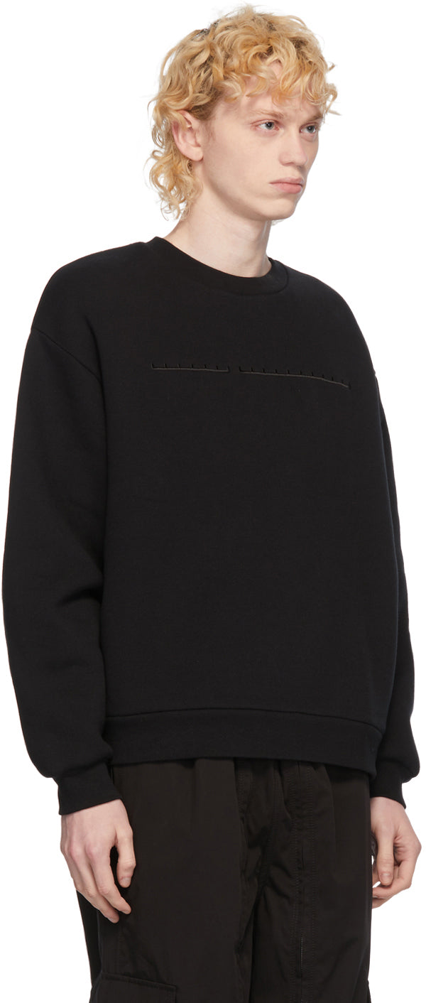 Long sleeve cotton sweatshirt in black. Rib knit crewneck collar, cuffs, and hem. Tonal logo embroidered at front. Circular cut-outs at back. Supplier color: Black 100% cotton. Brand: Random Identities