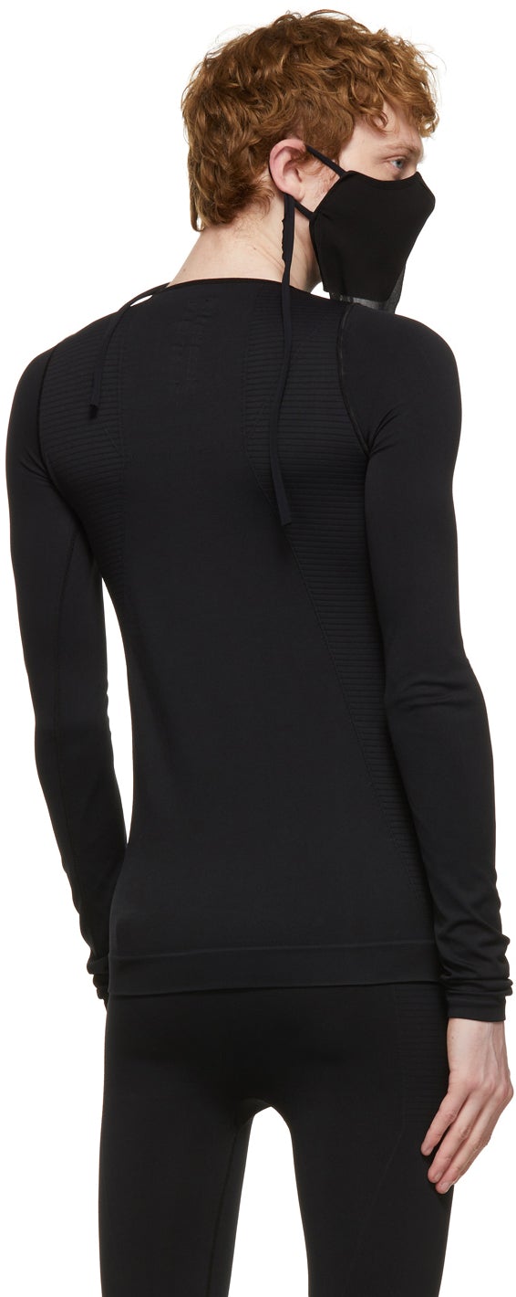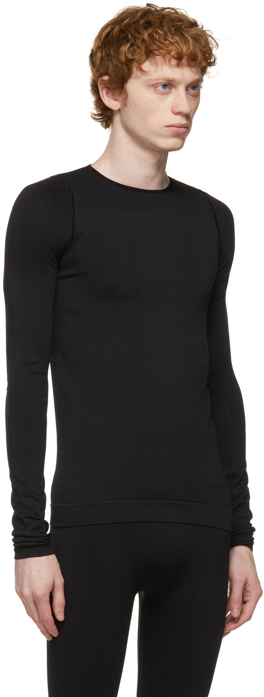 Long sleeve stretch jersey pullover in black. Textured knit trim throughout. Tonal webbing trim at crewneck collar. Rib knit cuffs and hem. Pinched seams at back. Tonal overlock stitching. Supplier color: Black 95% polyester, 5% elastane. Brand: Rick Owens