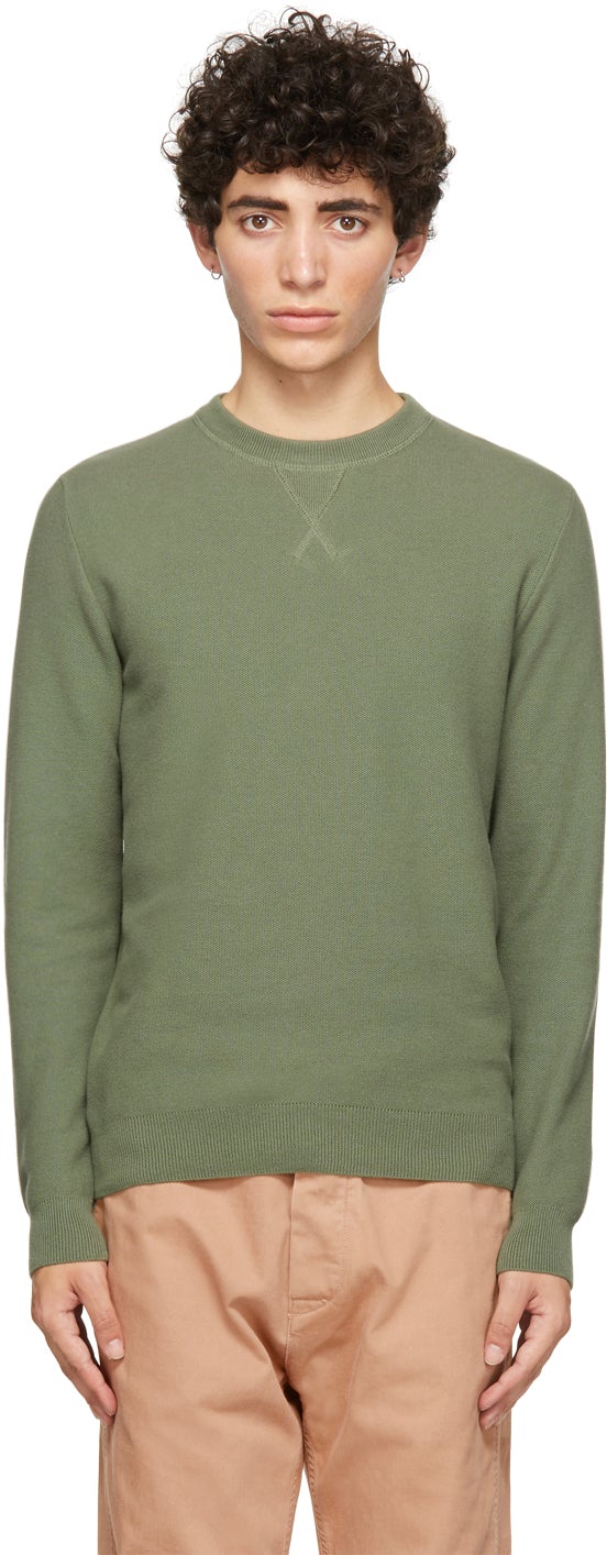 Long sleeve knit cotton sweater in khaki. Rib knit crewneck collar, cuffs, and hem. Supplier color: Light khaki 100% cotton. Brand: Sunspel