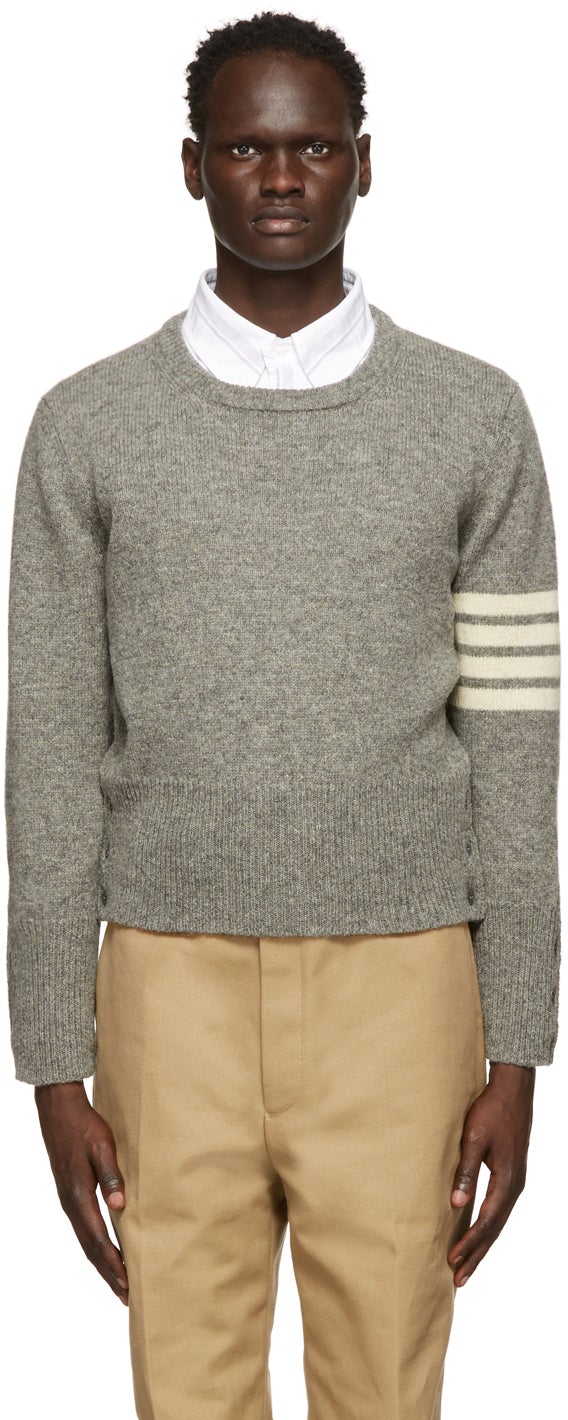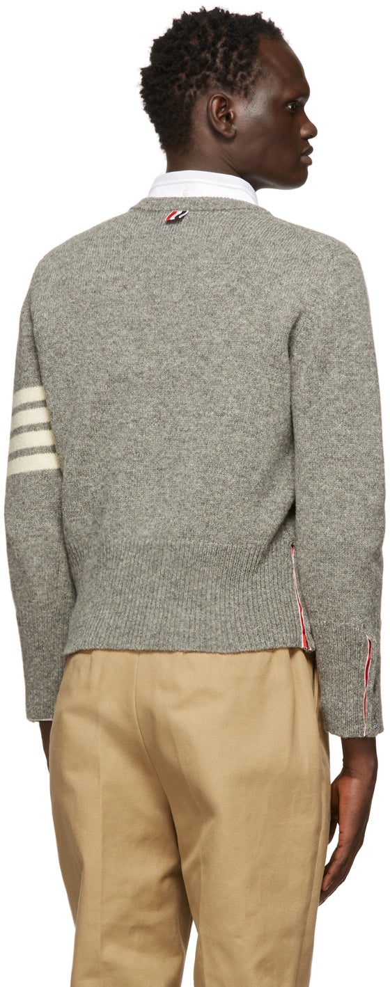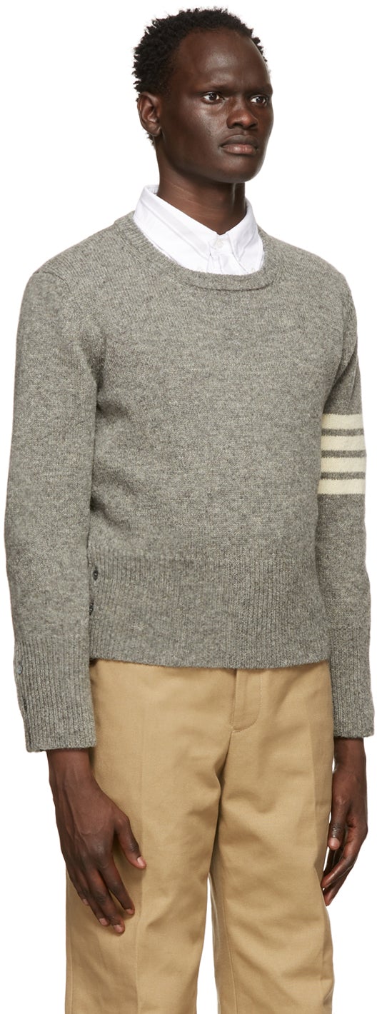 Thom Browne Grey Shetland 4-Bar Crewneck Sweater