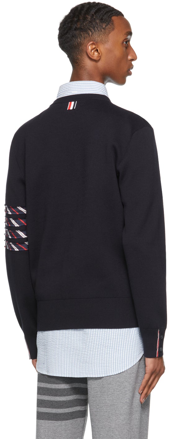 Thom Browne Navy Milano 4-Bar Stripe Crewneck Sweater