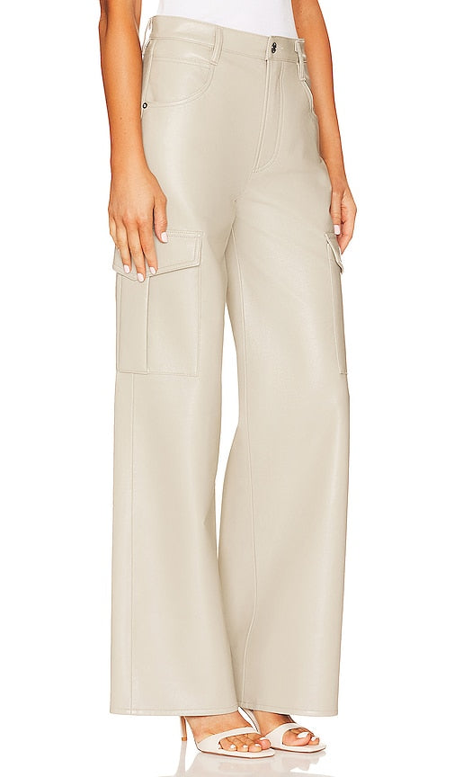 AGOLDE Recycled Leather Minka Cargo in Beige. - size 33 (also in 34) AGOLDE Recycled Leather Minka Cargo in Beige. - size 33 (also in 34) 50% recycled leather 30% polyurethane 10% viscose 10% polyester. Made in USA. Dry clean only. Zip fly with button closure. 7-pocket styling. Smooth leather fabric. 20 at the knee breaks to 21 at the leg opening. AGOL-WP37. A9113-1285. Based in downtown Los Angeles, AGOLDE is a premium denim label dedicated to highlighting youth culture throughout the decades. Instead of simply replicating your favorite styles from the past, they set out to recreate them with a contemporary approach in mind. The styles may emit an irreverent attitude, but AGOLDE is serious when it comes to quality. They use only the most innovative fabrics sourced from around the world and facilitate all product development to create denim of the highest caliber. Shop the latest in fashion from AGOLDE