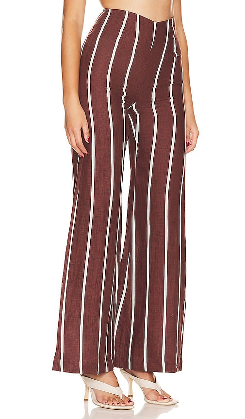 FAITHFULL THE BRAND La Plage De Mau Pant in Brown. - size XL (also in XS, XXL) FAITHFULL THE BRAND La Plage De Mau Pant in Brown. - size XL (also in XS, XXL) 100% linen. Made in Indonesia. Hand wash. Hidden back zipper closure. Lightweight linen fabric. Item not sold as a set. 20 at the knee breaks to 24 at the leg opening. FAIB-WP68. FF2305-SVT. Scandinavia meets Australia with Faithfull the Brand. Creators Sarah-Jane Abrahams and Helle Them-Enger marry simplicity with a laid-back spirit through a delightful collection of shorts, dresses, and must-have lazy day tops. The pair's designs are all hand-sewn and hand-printed, lending each piece a unique character. By imbuing this respect for design with a signature bohemian vibe, Faithfull creates clothes for girls who chase their dreams and the sun. Shop the latest in fashion from FAITHFULL THE BRAND