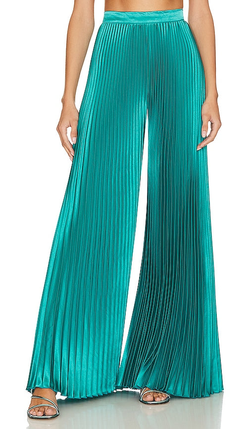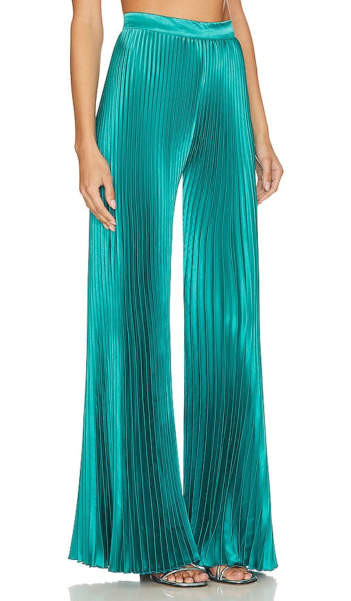 L'IDEE Bisous Pant in Teal. - size 10/M (also in 14/XL) L'IDEE Bisous Pant in Teal. - size 10/M (also in 14/XL) 100% polyester. Made in Indonesia. Hand wash. Hidden back zipper closure. Plisse fabric. Item not sold as a set. 44 at the knee breaks to 68 at the leg opening. LIDR-WP9. BISOUS. Shop the latest in fashion from L'IDEE