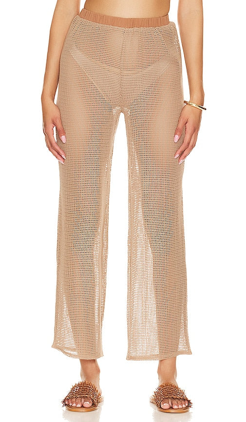 SNDYS Hyams Pant in Brown. - size M (also in S, XL, XXL) SNDYS Hyams Pant in Brown. - size M (also in S, XL, XXL) 100% cotton. Made in China. Hand wash. Elastic waistband. Open knit crochet fabric. Garment is intentionally sheer, undergarments will show through. Please note undergarment not included Item not sold as a set. 18.5 at the knee and 18.5 at the leg opening. SDYS-WP34. SFP095. We want women to feel like they don't need permission to showcase their own style. For us, it's always going to be about promoting creativity without contingencies. Directors Melanie Purcell and Lauren Gocher named SNDYS after their favorite day of the week, Sunday, where they would spend time with family and discover new creative outlets. SNDYS offers cutting edge and affordable styles that not only follow trends, but start them. Based out of Sydney, Australia, SNDYS is bold and unabashedly feminine. Expect matching lounge sets, floral maxi dresses, and timeless outerwear. Shop the latest in fashion from SNDYS