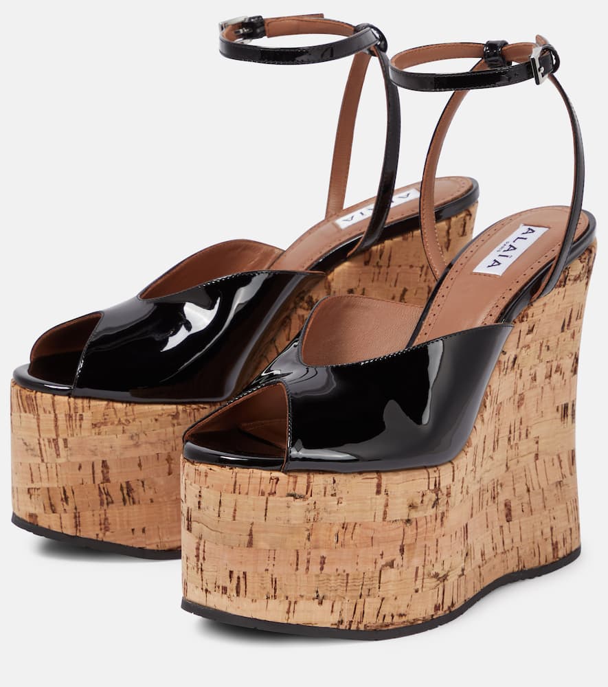 Upper: leather. Lining: leather. Sole: leather insole, rubber sole. Toe shape: round open toe. Made in Italy. Includes: dust bags, shoe box. Designer color name: Noir. Trim: cork. Closure: buckle-fastening ankle strap. Hardware color: silver. Shop the latest Alaia High-Heel Sandals for women now.