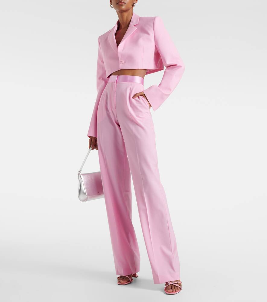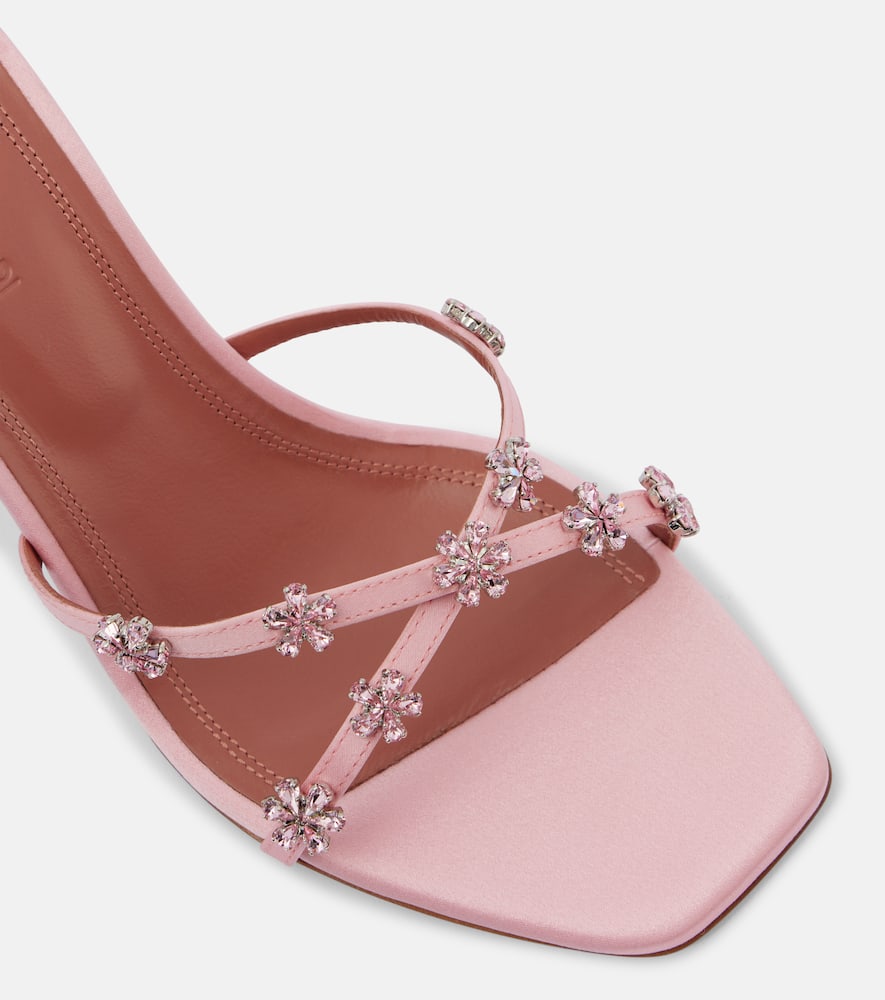 Upper: satin, leather. Lining: fabric, leather. Sole: leather insole, rubber sole. Toe shape: square open toe. Made in Italy. Includes: shoe box, dust bags. Designer color name: Baby Pink. Shop the latest Amina Muaddi Mid-Heel Sandals for women now.