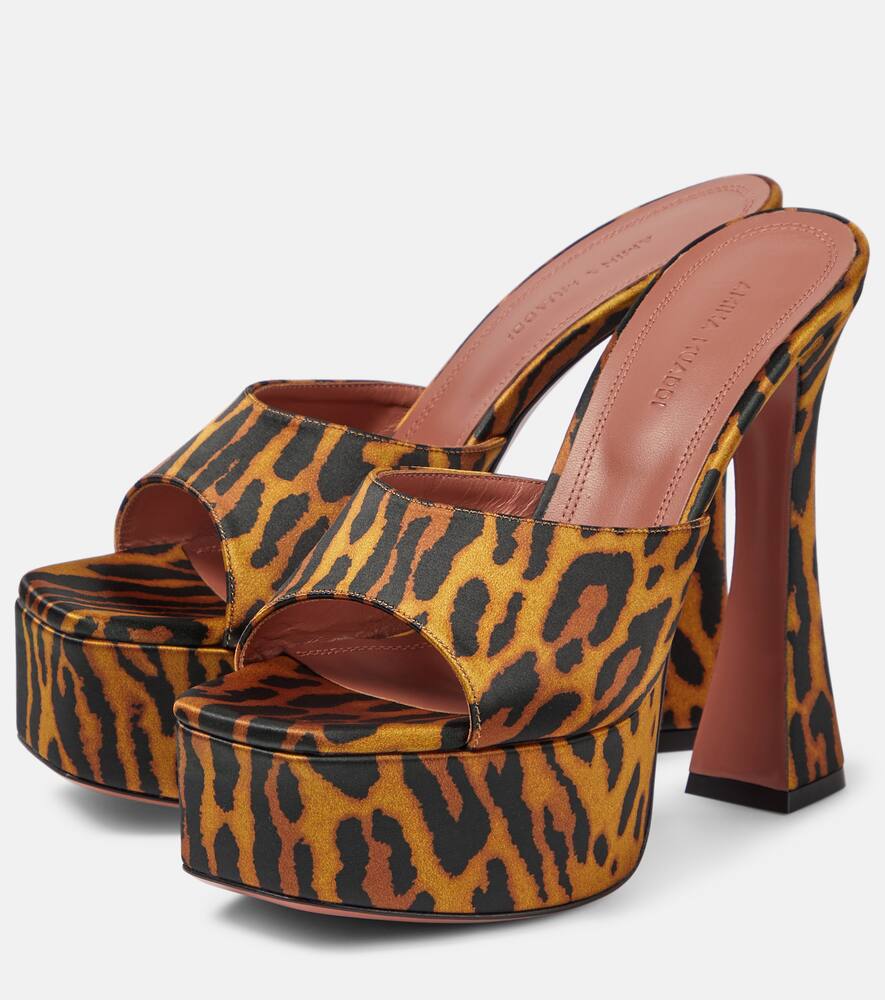 Amina Muaddi Dalida leopard-print satin platform mules
