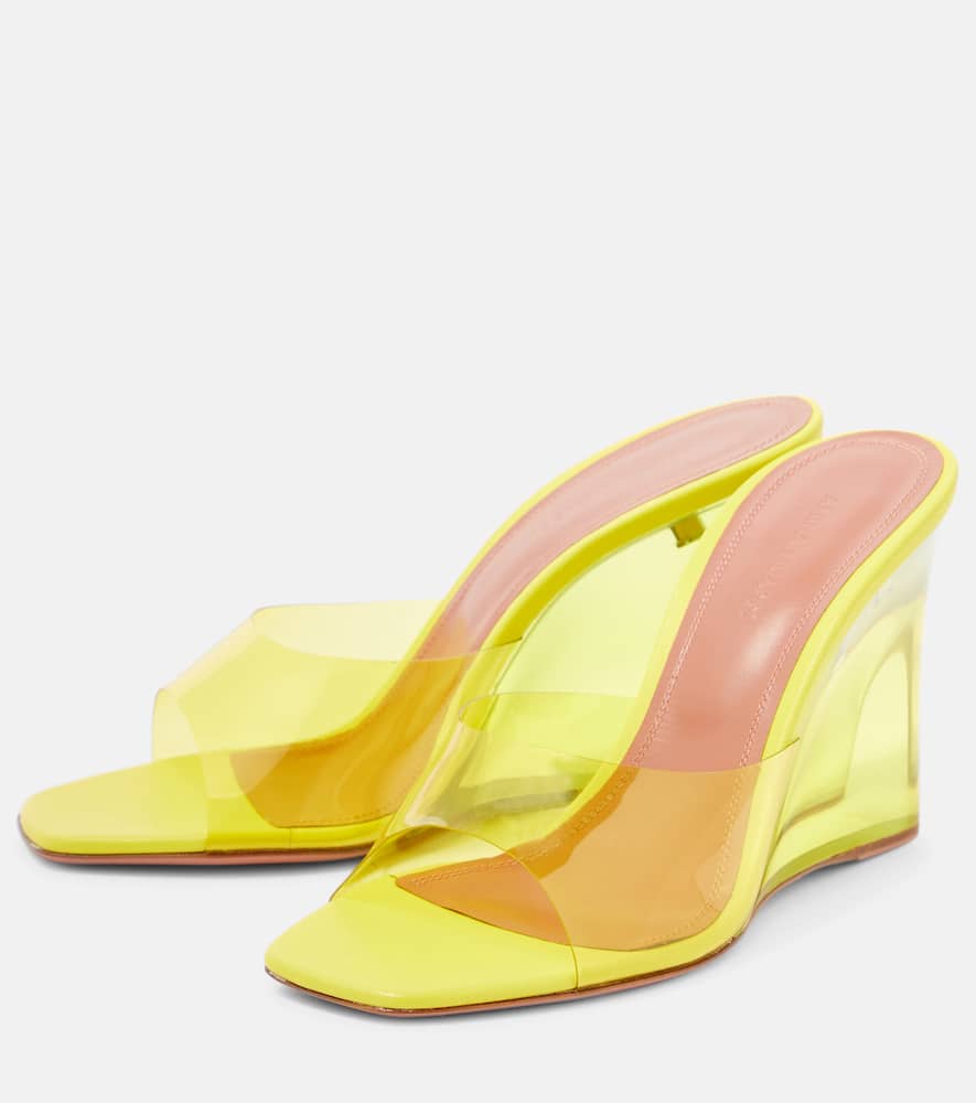 Trim: plastic. Lining: plastic. Sole: leather insole, rubber sole. Upper: plastic. Comes with a box, Comes with dust bag. Designer color name: Yellow. Toe shape: square open toe. Made in Italy. Shop the latest Amina Muaddi High-Heel Sandals for women now.