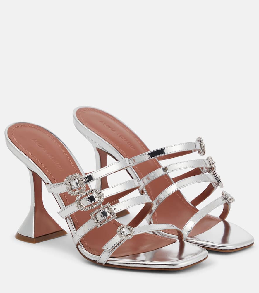 Lining: leather. Sole: leather insole, leather and rubber sole. Upper: leather. Toe shape: square open toe. Comes with a box. Designer color name: Silver. Made in Italy. Comes with dust bag. Shop the latest Amina Muaddi High-Heel Sandals for women now.
