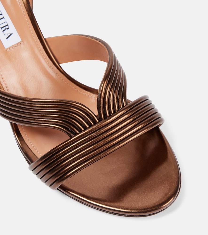 Upper: leather. Lining: leather. Sole: leather insole and sole. Toe shape: round open toe. Made in Italy. Includes: shoe box, dust bag. Designer color name: Espresso. Closure: buckle-fastening ankle strap. Hardware color: bronze. Shop the latest Aquazzura Mid-Heel Sandals for women now.