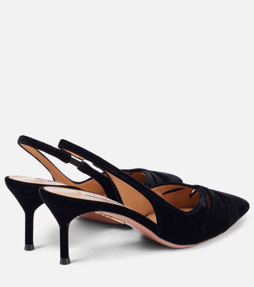 Upper: leather. Lining: leather. Sole: leather insole and sole. Toe shape: pointed toe. Made in Italy. Includes: shoe box, dust bag. Designer color name: Black. Closure: ankle strap. Shop the latest Aquazzura Mid-Heel Pumps for women now.