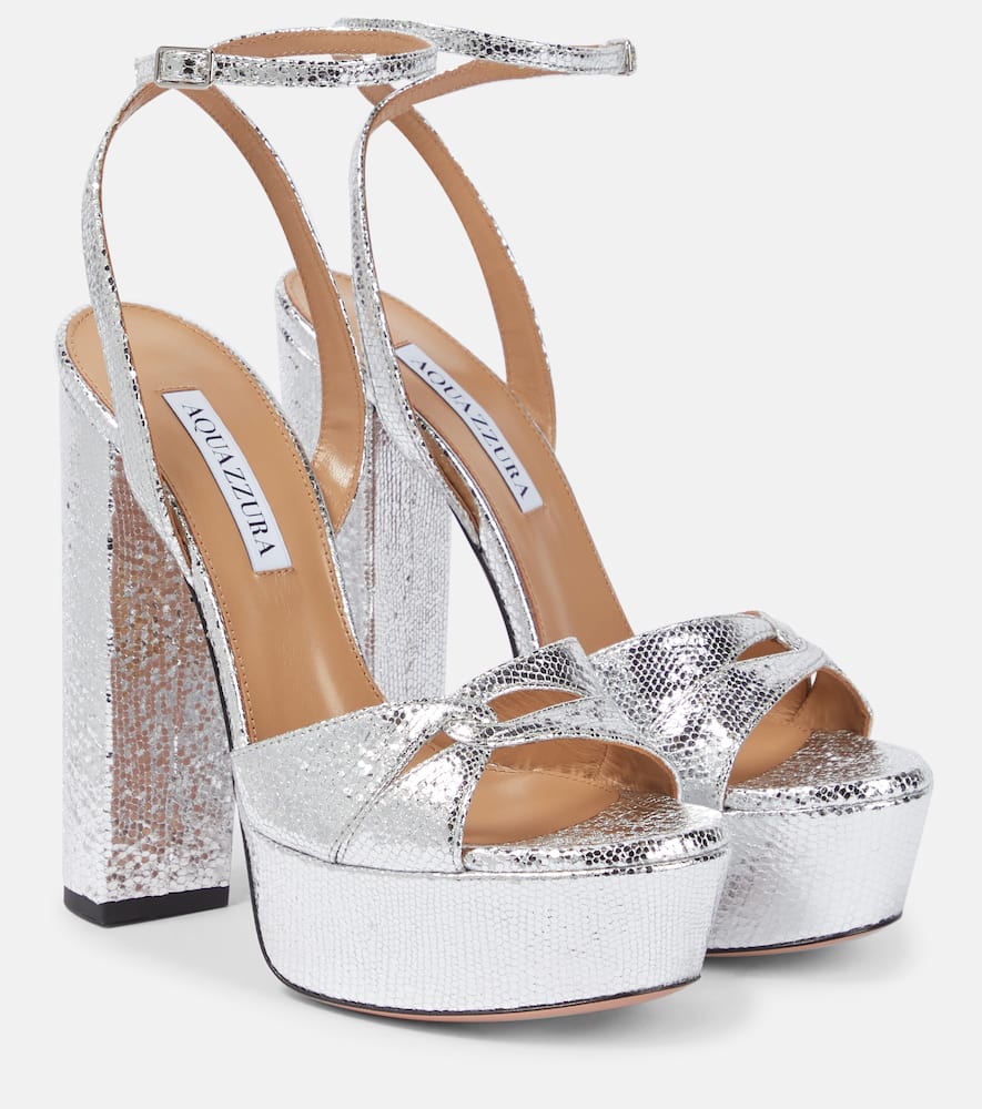 Toe shape: round open toe. Lining: leather. Sole: leather insole and sole. Upper: leather. Closure: buckle-fastening ankle strap. Designer color name: Silver. Comes with a box. Made in Italy. Comes with dust bag. Shop the latest Aquazzura High-Heel Sandals for women now.