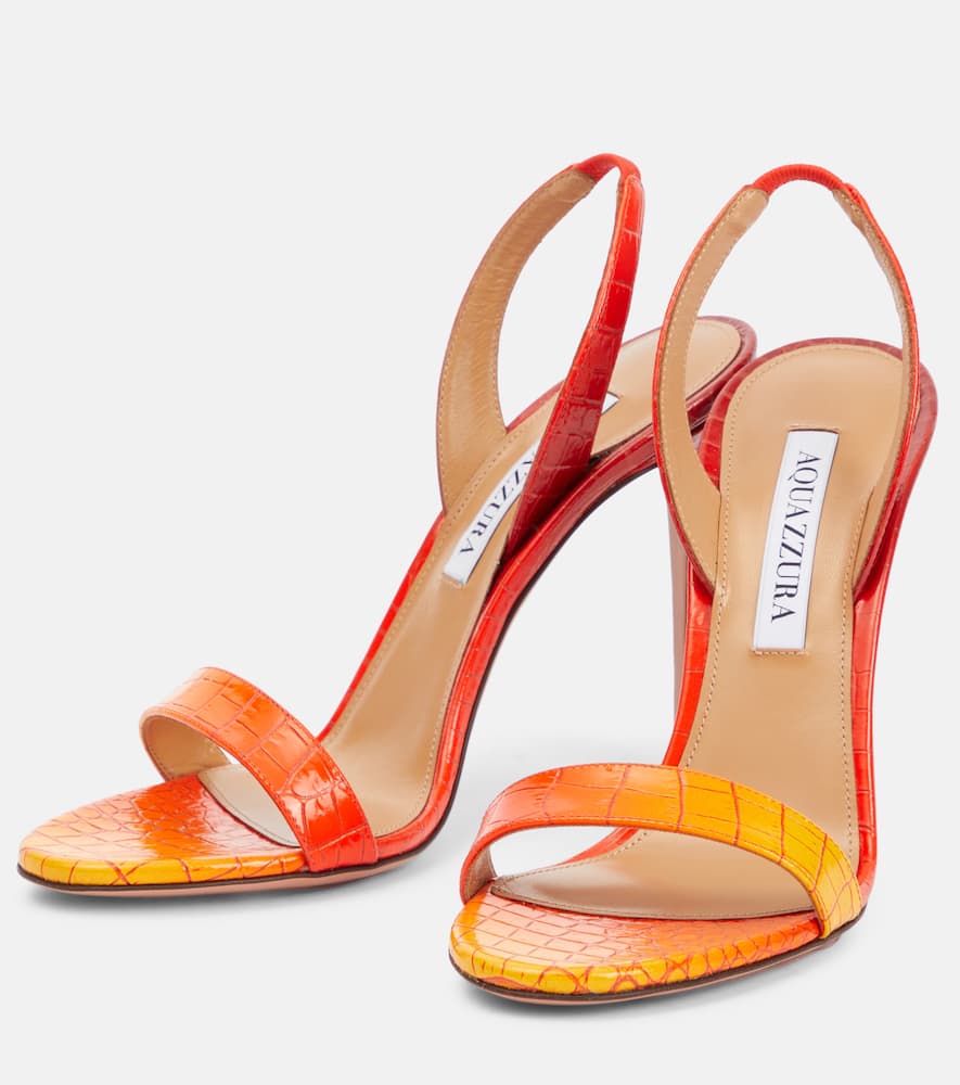 Toe shape: round open toe. Lining: leather. Upper: cow leather. Comes with dust bag. Sole: leather insole and sole. Designer color name: Orange Degradé. Closure: elasticated strap. Comes with a box. Made in Italy. Shop the latest Aquazzura High-Heel Sandals for women now.
