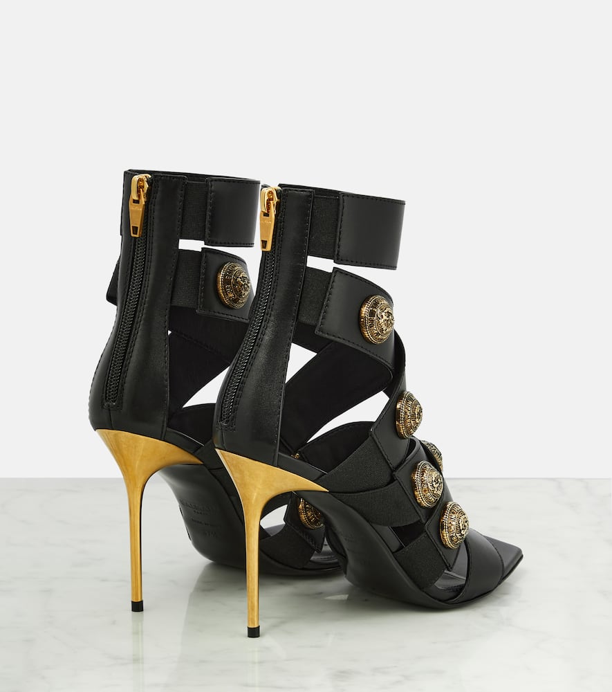Lining: leather, fabric. Sole: leather insole and sole. Closure: zipped back. Comes with a box. Made in Italy. Designer color name: Noir/Or. Comes with dust bag. Upper: fabric, calf leather. Toe shape: square open toe. Shop the latest Balmain High-Heel Sandals for women now.