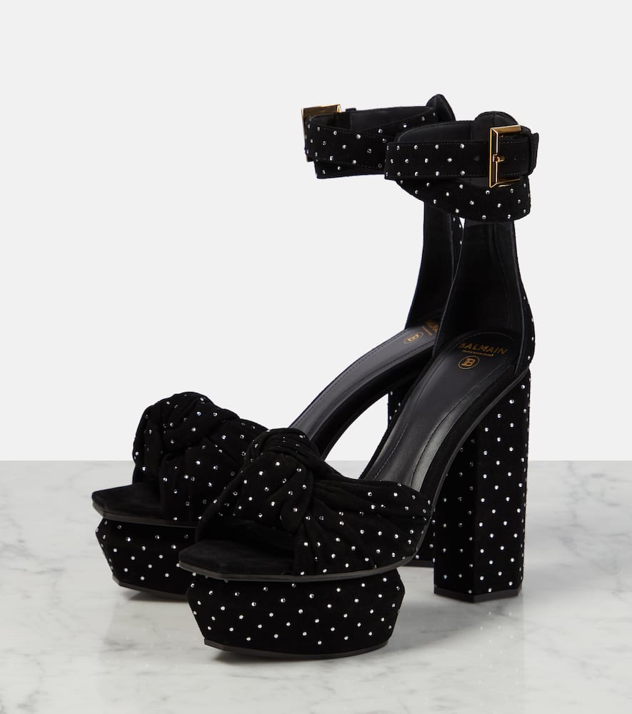 Comes with dust bag. Sole: leather insole and sole. Upper: leather. Comes with a box. Designer color name: Eac Noir/Argent. Toe shape: square open toe. Closure: buckle-fastening ankle strap. Made in Italy. Shop the latest Balmain High-Heel Sandals for women now.
