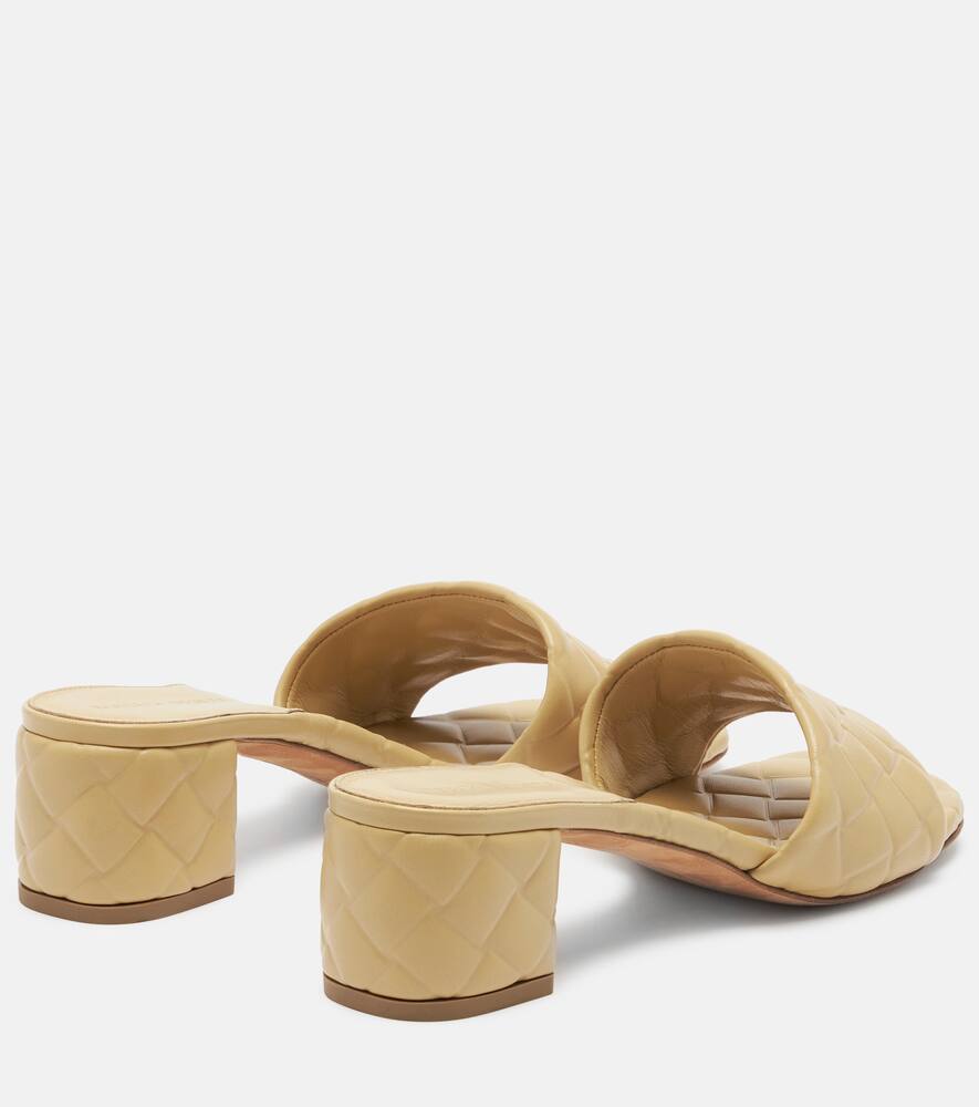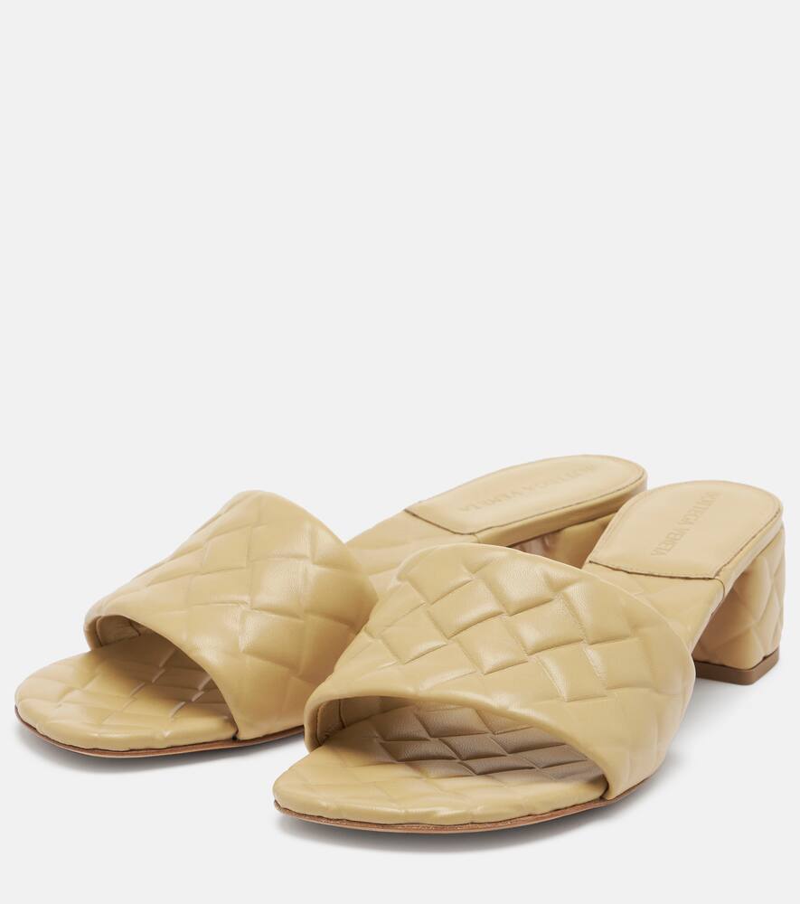 Upper: leather. Lining: leather. Sole: leather insole and sole. Toe shape: round open toe. Made in Italy. Includes: dust bags, shoe box. Designer color name: Cane Sugar. Shop the latest Bottega Veneta Mid-Heel Sandals for women now.