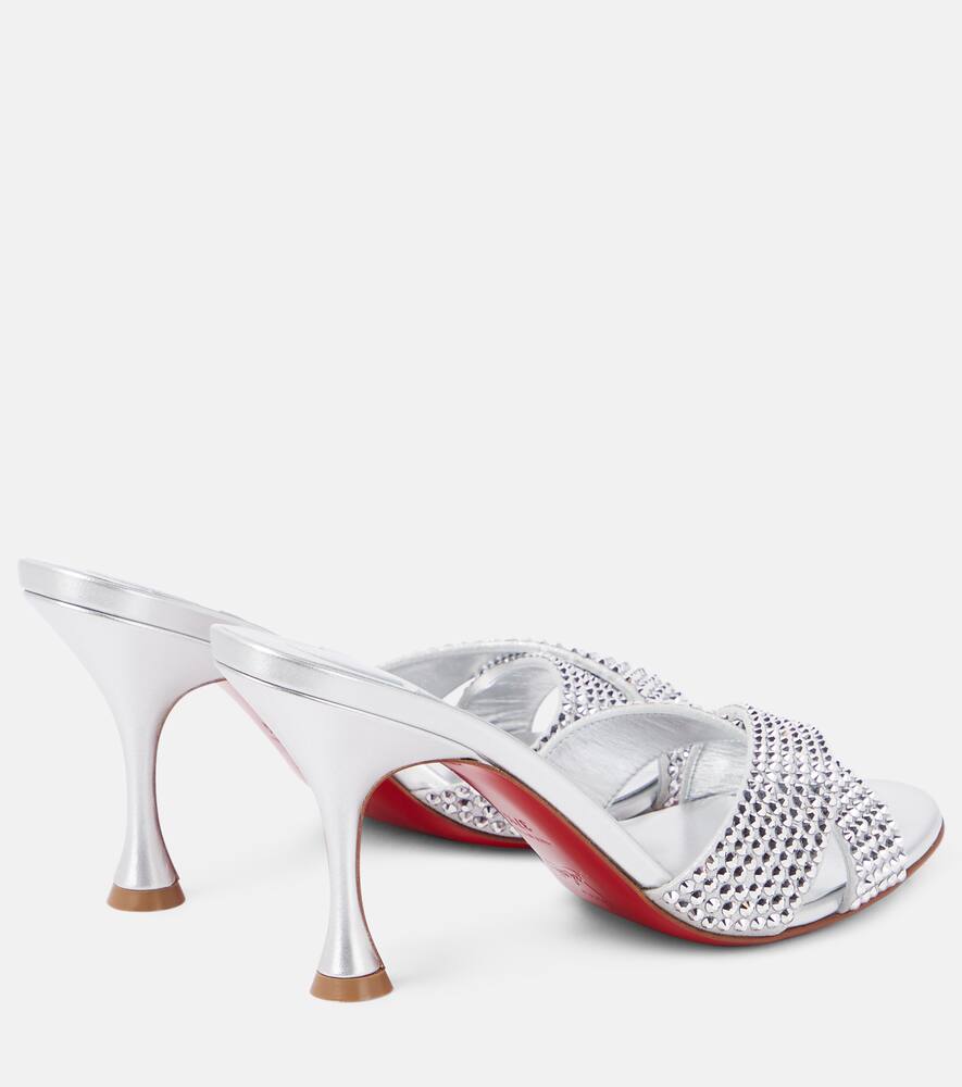 Upper: leather. Lining: leather. Sole: leather insole and sole. Toe shape: round open toe. Made in Italy. Includes: dust bags, shoe box. Designer color name: Version Silver. Shop the latest Christian Louboutin Mid-Heel Sandals for women now.