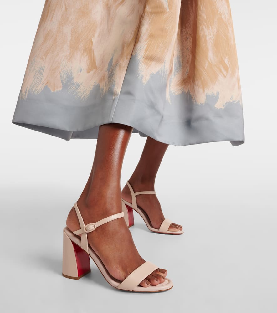 Upper: leather. Lining: leather. Sole: leather insole, signature red leather sole. Toe shape: round open toe. Made in Italy. Includes: shoe box. Designer color name: Leche. Shop the latest Christian Louboutin High-Heel Sandals for women now.