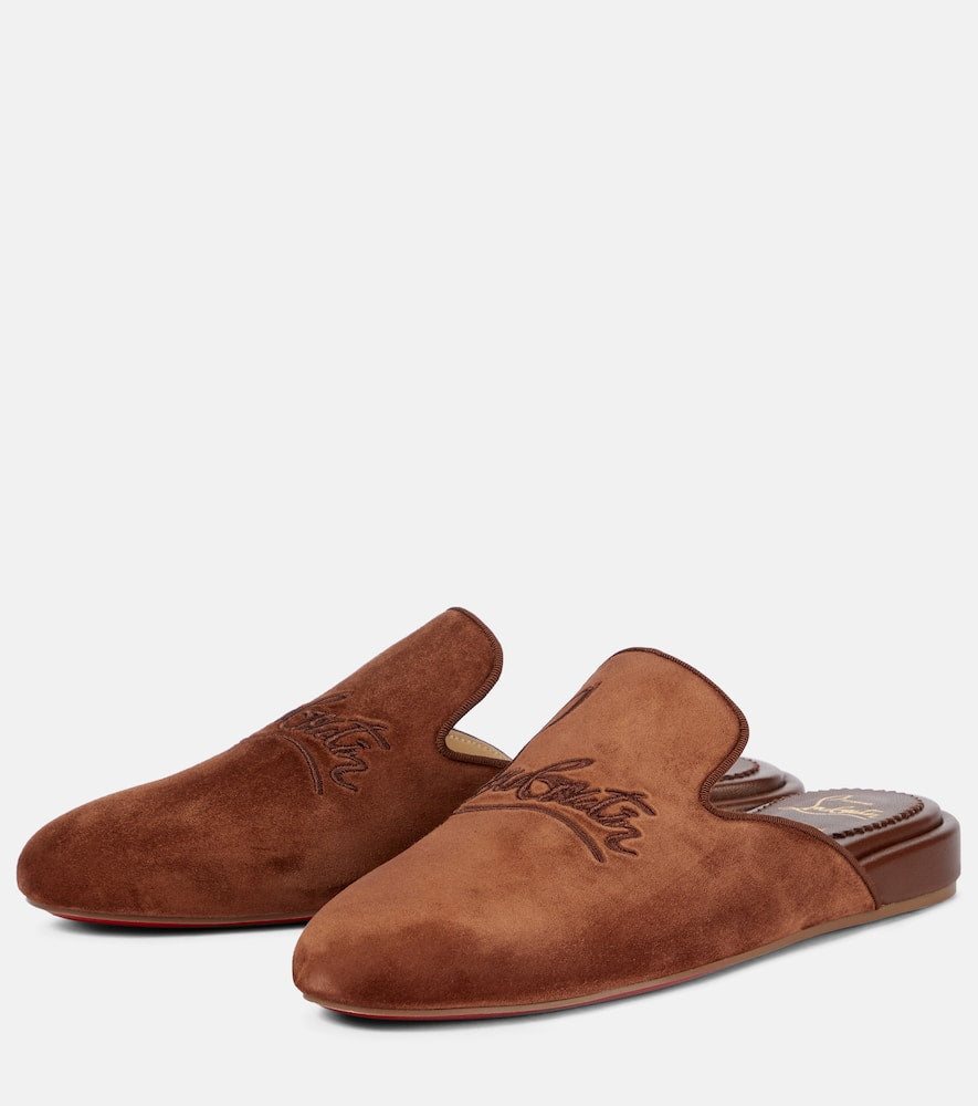 Lining: leather. exclusive to mytheresa.com. Toe shape: round toe. Upper: calf leather, lamb leather. Sole: leather insole, signature red leather sole. Designer color name: Nude 7. Made in Italy. Shop the latest Christian Louboutin Slides for women now.