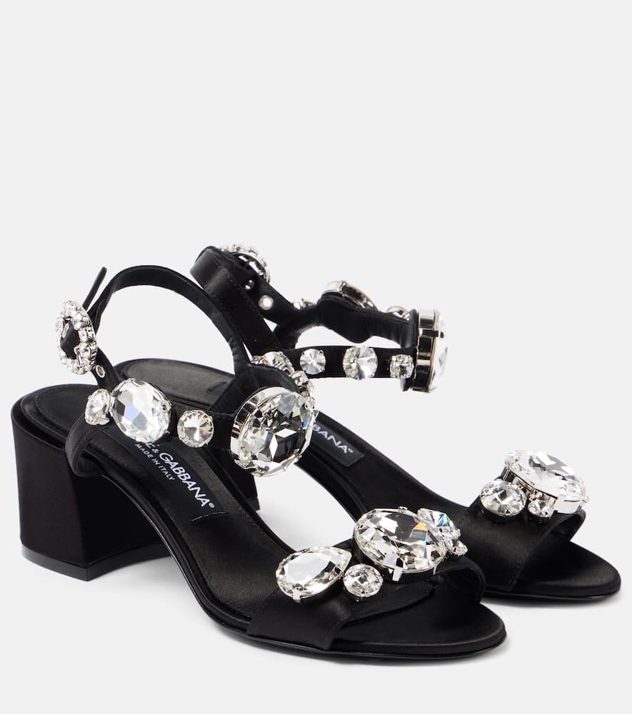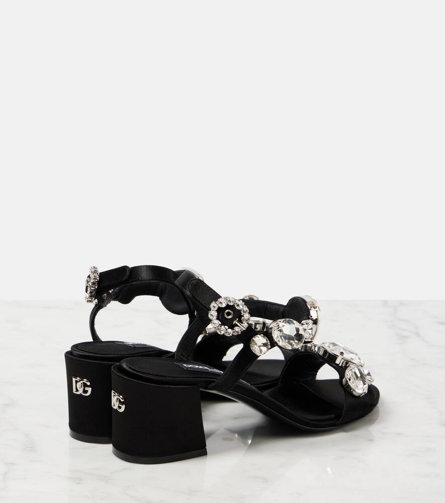 Upper: fabric. Lining: leather. Sole: fabric insole, leather sole. Toe shape: almond open toe. Made in Italy. Includes: shoe box, dust bag. Designer color name: Nero/Crystal. Closure: buckle-fastening ankle strap. Shop the latest Dolce&Gabbana Mid-Heel Sandals for women now.