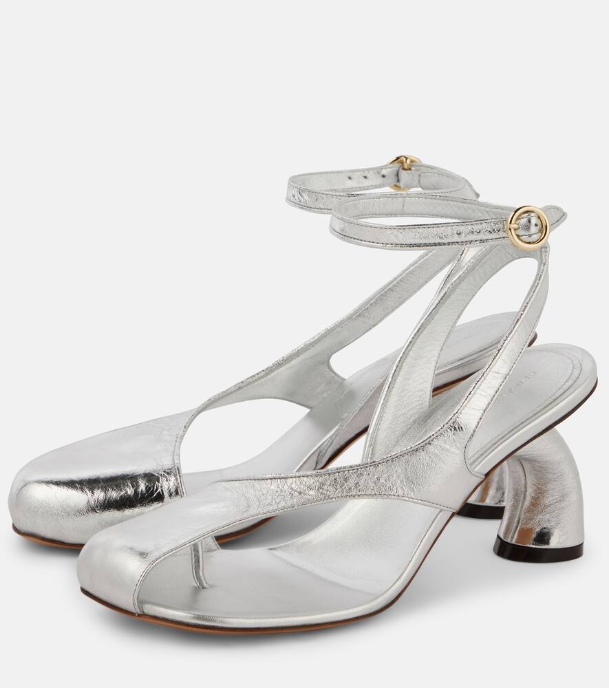 Upper: leather. Lining: leather. Sole: leather insole and sole. Toe shape: square open toe. Made in Italy. Includes: shoe box, dust bag. Designer color name: Silver. Closure: buckle-fastening ankle strap. Shop the latest Dries Van Noten Mid-Heel Sandals for women now.