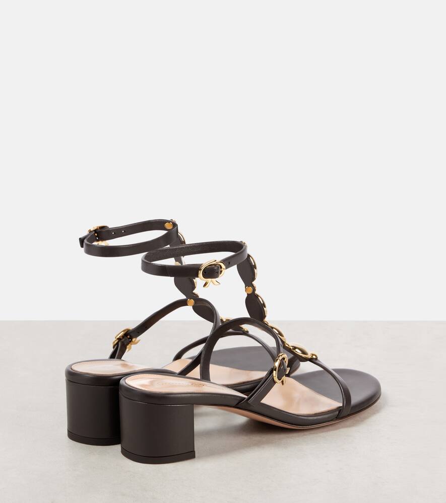 Upper: leather. Lining: leather. Sole: leather insole and sole. Toe shape: round open toe. Made in Italy. Includes: shoe box, dust bag. Designer color name: Moka. Closure: buckle-fastening ankle strap. Hardware color: gold. Shop the latest Gianvito Rossi Mid-Heel Sandals for women now.