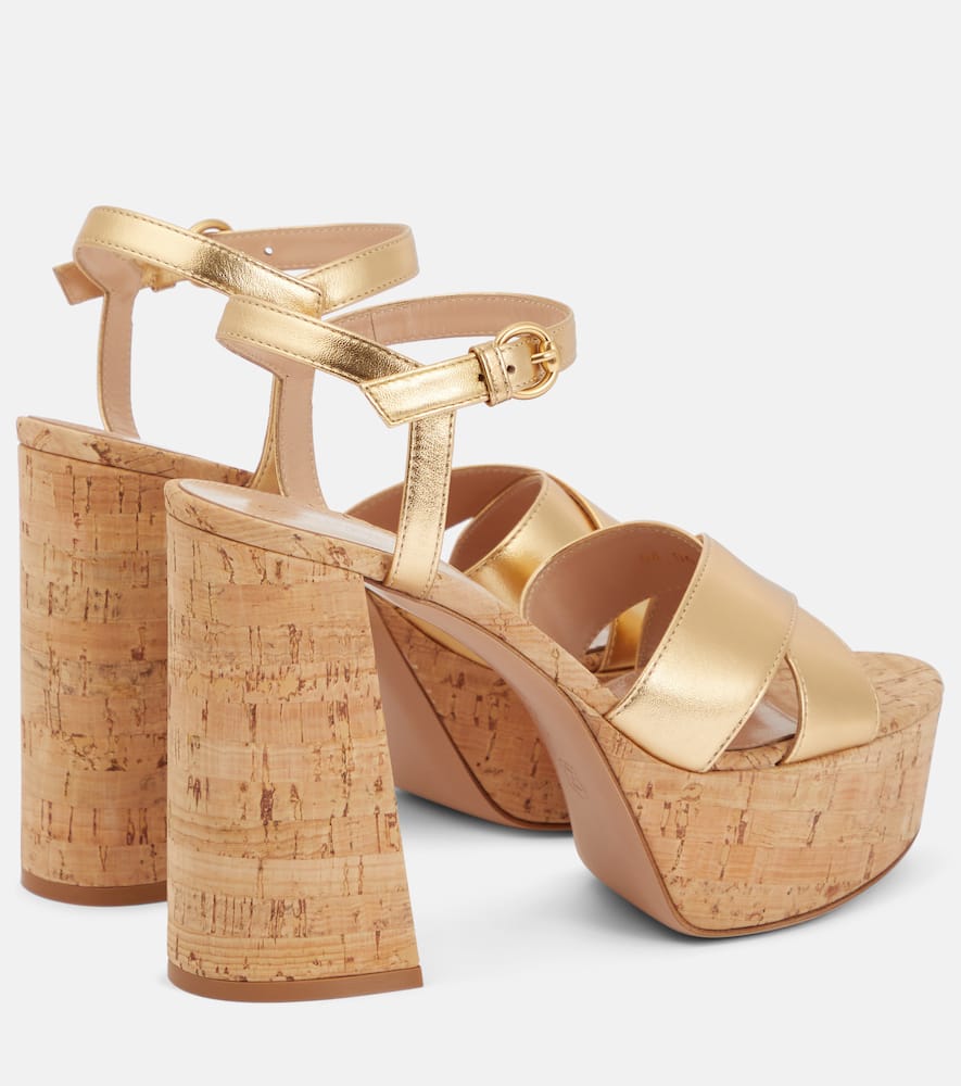 Upper: leather. Lining: leather. Sole: leather insole, rubber sole. Toe shape: round open toe. Made in Italy. Includes: shoe box, dust bags. Designer color name: Gold. Closure: buckle fastening. Trim: cork. Shop the latest Gianvito Rossi High-Heel Sandals for women now.