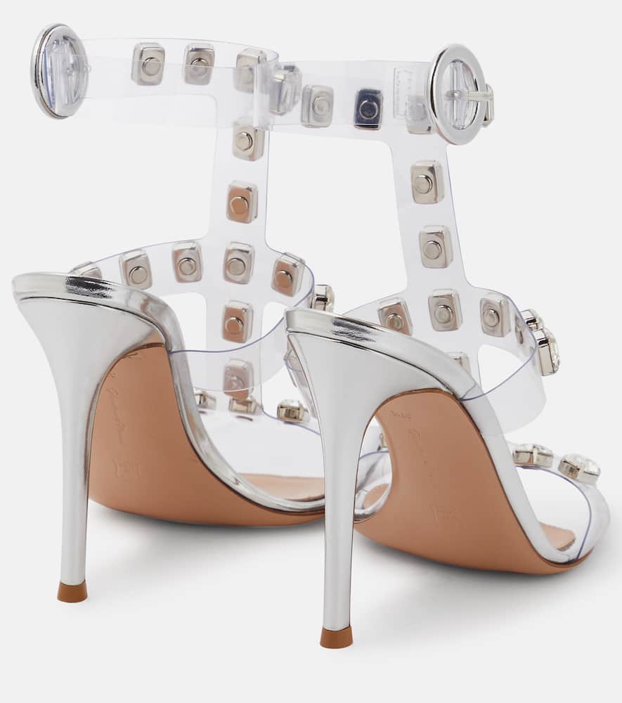 Lining: leather. Upper: plastic. Sole: leather insole and sole. Comes with a box, Comes with dust bags. Toe shape: square open toe. Designer color name: Trasp+Silver. Made in Italy. Shop the latest Gianvito Rossi High-Heel Sandals for women now.