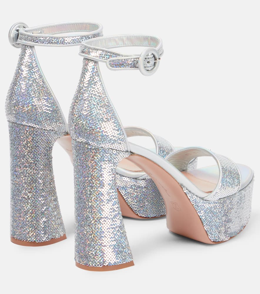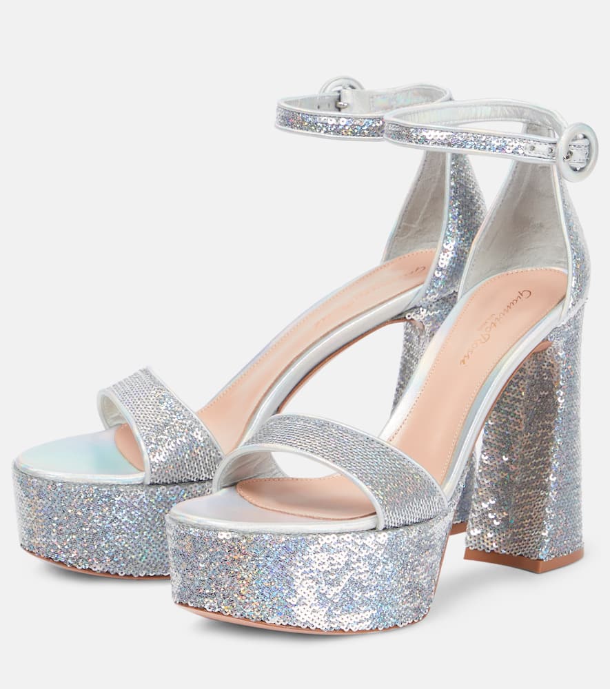 Toe shape: round open toe. Lining: leather. Sole: leather insole and sole. Comes with a box. Made in Italy. Designer color name: Hologram+Hologram. Comes with dust bag. Upper: fabric, leather. Closure: buckle fastening. Shop the latest Gianvito Rossi High-Heel Sandals for women now.