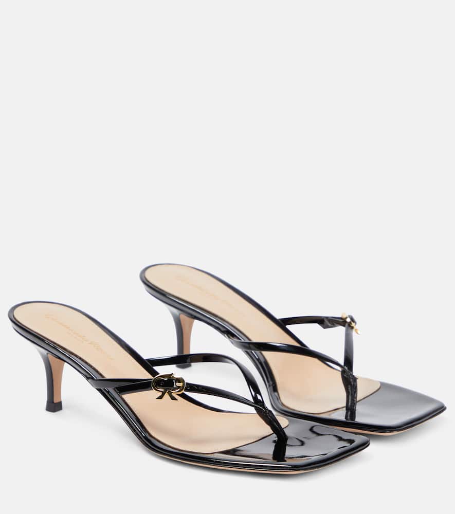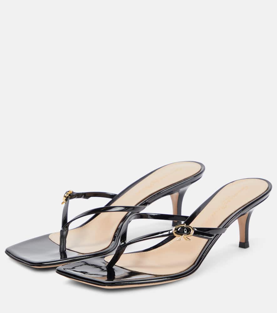 Upper: leather. Lining: leather. Sole: leather insole and sole. Toe shape: square open toe. Made in Italy. Includes: shoe box, dust bag, extra heel tips. Designer color name: Black. Closure: buckle fastening. Shop the latest Gianvito Rossi Mid-Heel Sandals for women now.