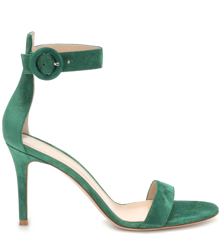 Upper: goat leather. Lining: leather. Sole: leather insole and sole. Toe shape: almond open toe. Made in Italy. Includes: shoe box. Designer color name: Leaf. Closure: buckle-fastening ankle strap. Shop the latest Gianvito Rossi Mid-Heel Sandals for women now.