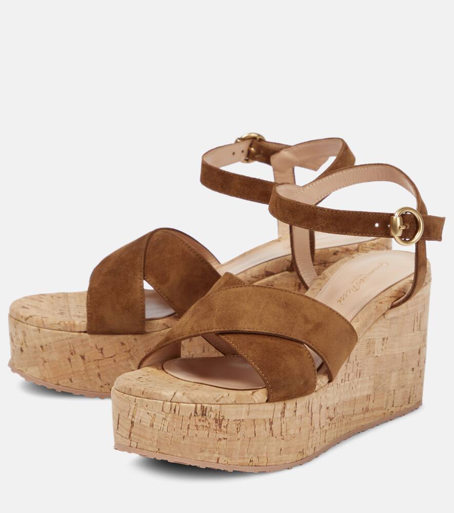 Toe shape: round open toe. Lining: leather. Sole: leather insole, rubber sole. Trim: cork. Comes with a box. Designer color name: Texas. Made in Italy. Comes with dust bag. Closure: buckle fastening. Upper: leather. Shop the latest Gianvito Rossi High-Heel Sandals for women now.