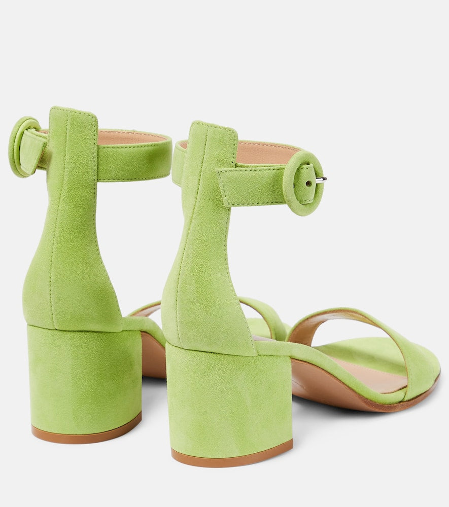 Toe shape: round open toe. Lining: leather. Sole: leather insole and sole. Upper: leather. Comes with a box, Comes with dust bag. Designer color name: Wasabi. Closure: buckle-fastening ankle strap. Made in Italy. Shop the latest Gianvito Rossi Mid-Heel Sandals for women now.