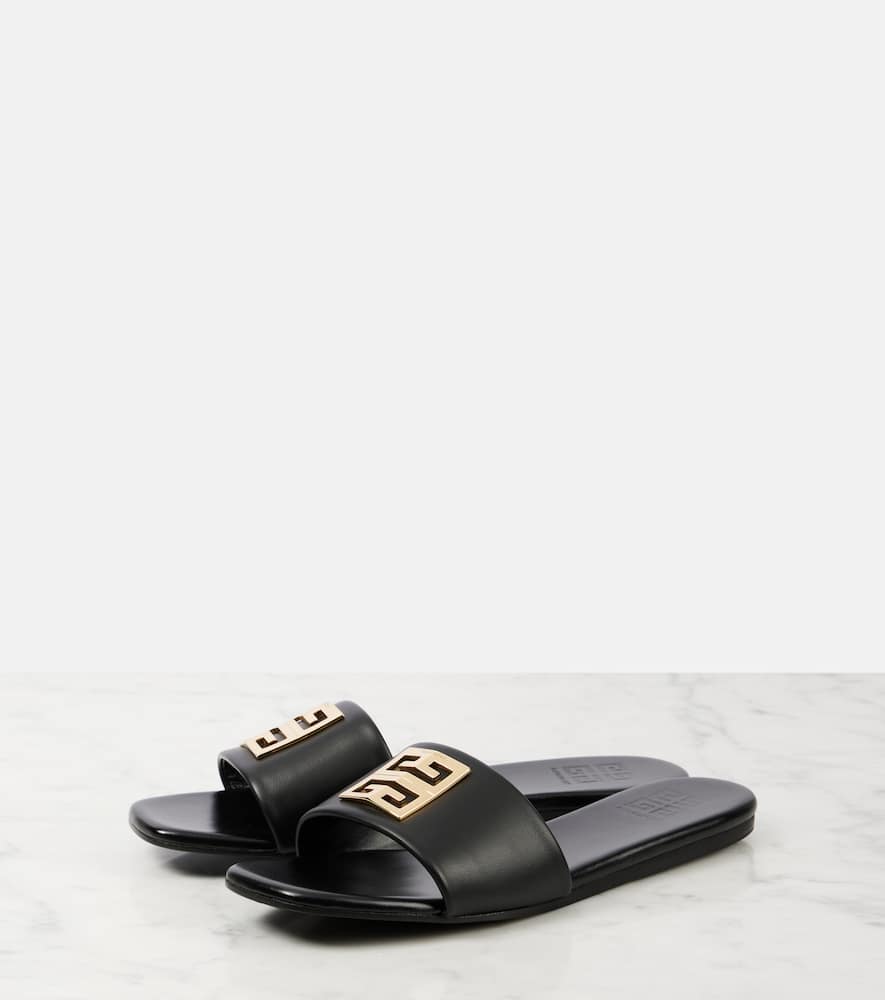 Upper: leather. Lining: leather. Sole: leather insole and sole. Toe shape: square open toe. Made in Italy. Includes: shoe box, dust bags. Designer color name: Black. Hardware color: gold. Shop the latest Givenchy Slides for women now.